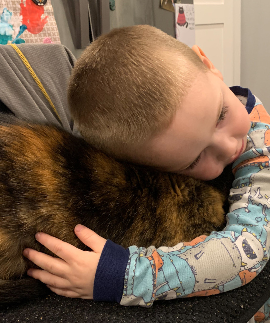Because Cali’s the best girl! She been through everything with me. Cali has a gentle soul and just wants to be loved. After having my 2 boys, she was put through the wringer with them. She did not like the toddler phases to say the least. But despite all that, she still loves them and sleeps with them until I’m ready for bed. We just love Cali so much.