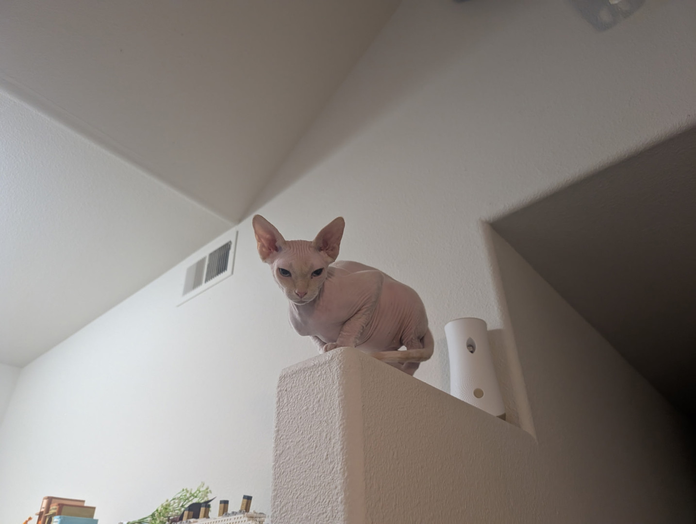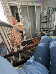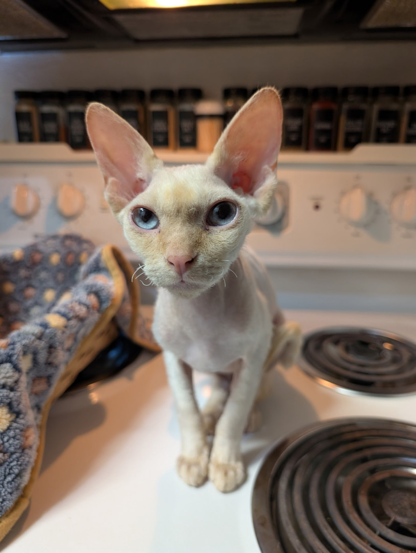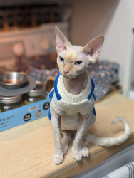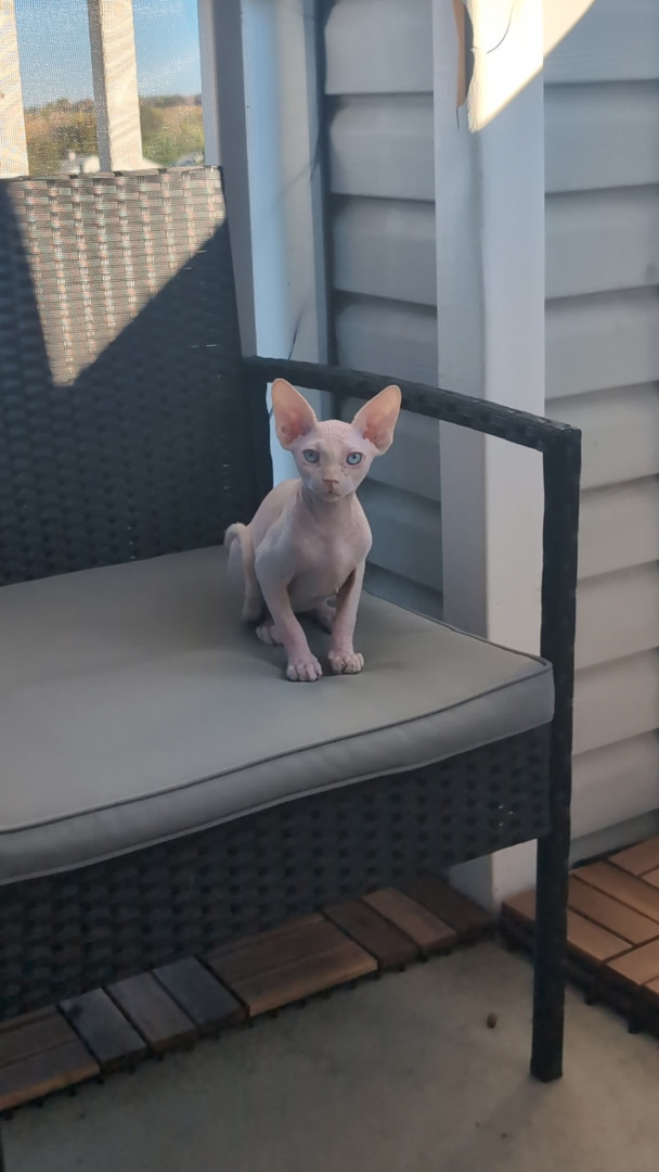 Calvin’s most unique quality is his role as our 'Vocal Shadow.' Being a Sphynx, he has zero concept of personal space and prefers to be physically attached to Mom or Dad at all times. He doesn’t just follow us from room to room; he provides a constant, chatty running commentary on everything we do! Whether he’s voicing his opinions on the dinner menu or demanding a warm lap, his velvet skin and huge personality make him more like a tiny, naked human than a cat.