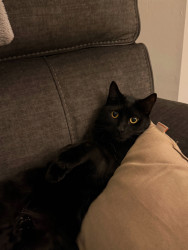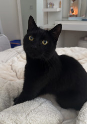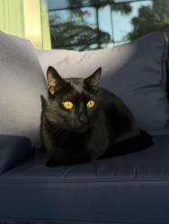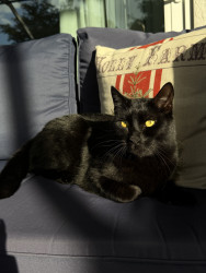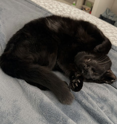 Calvin is a sweet 2-year-old Bombay with extra toes on every paw. He loves cuddling, riding in his stroller, and resting on my shoulders.