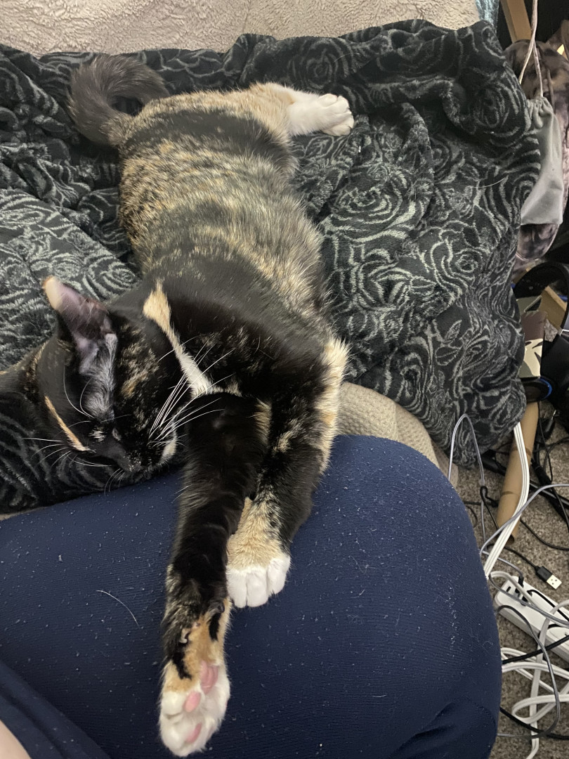 She is such a lover, and is so much fun. Calypso is a friendly kitty, that keeps everyone laughing and smiling. After both my surgeries she kept me feeling loved and cared for at all times. I couldn’t ask for a better best friend than calypso.