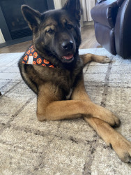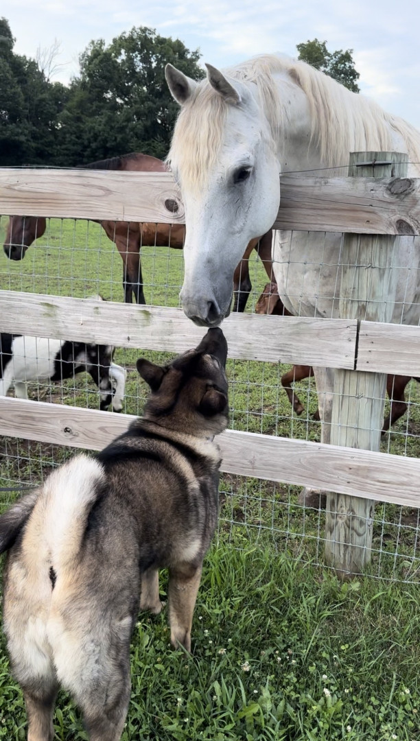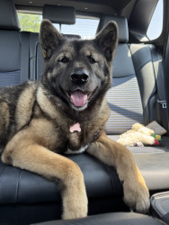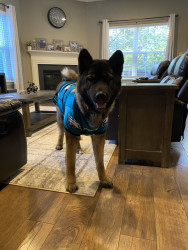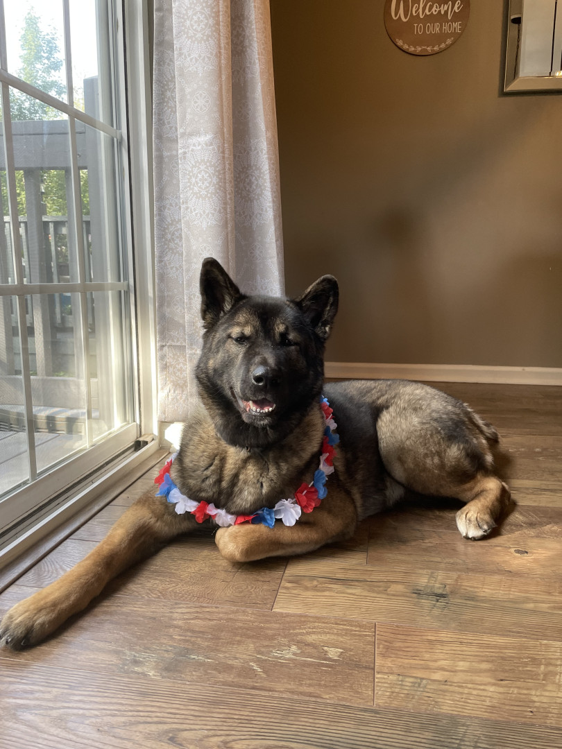 Camber is an American Akita. She’s the perfect mix of calm, cozy, and charismatic. She’s devoted to her nap times and enthusiastic about her walks. Whenever you walk in the door, she’s there greeting you with her lamb chop howling in excitement. She brings joy, laughter, and a little extra heart to each day.