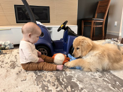 Gator is the kind of dog who makes people stop, smile & say hello. He’s a beautiful 14 mth male golden retriever service dog intraining