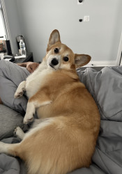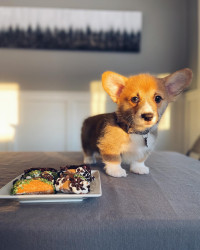 Cannoli’s most unique quality is his perpetual smile. They say a dog takes after his owner, but we truly believe his kindness and cheerfulness is genuinely the root of his soul. Some of his other unique qualities include: his yawns that turn into howls, his waddle and fluffy butt, the way he loves to roll, eat, and play in the snow, the way he looks like a bunny when he runs really fast, the way he lets us know when it’s time to go to bed, and his 2nd place title in his first ever Corgi race.