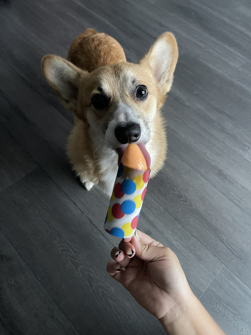 Receive Text UpdatesCannoli’s favorite toys are any balls that squeak! Cannoli loves to wrestle and play tug of war with toys at the dog park with his other furry friends. He especially loves opening his own Birthday/Christmas presents and his dog toy advent calendars! He gets so excited! Cannoli’s favorite treat, besides the occasional bite of table food, are blueberries and yak cheese dog chews! Cannoli loves all treats and will be right be your side when he smells or hears anything crinkling!