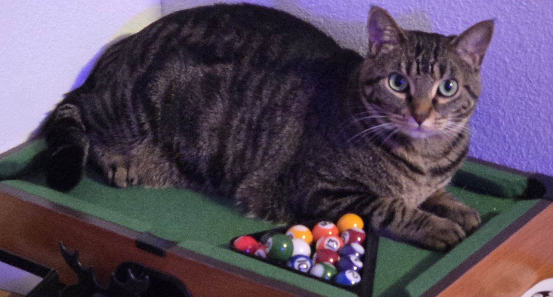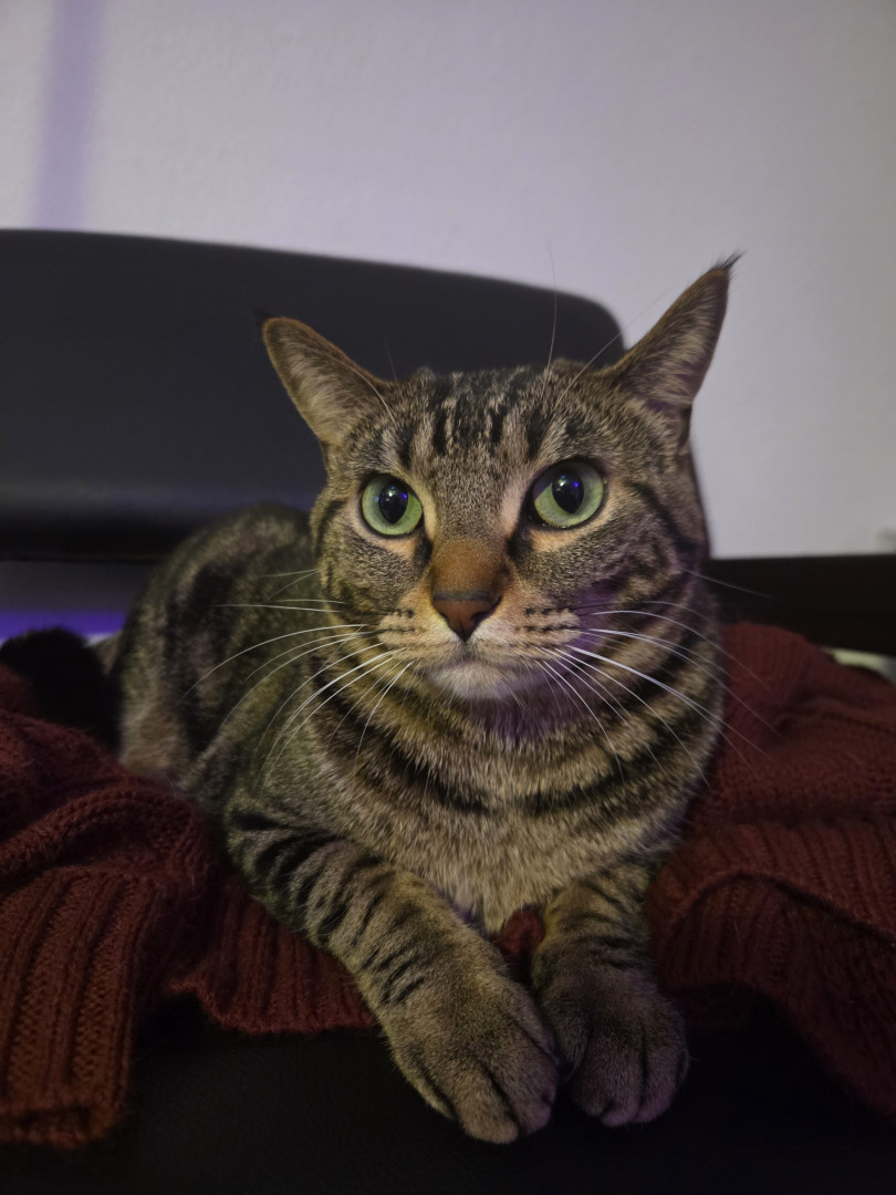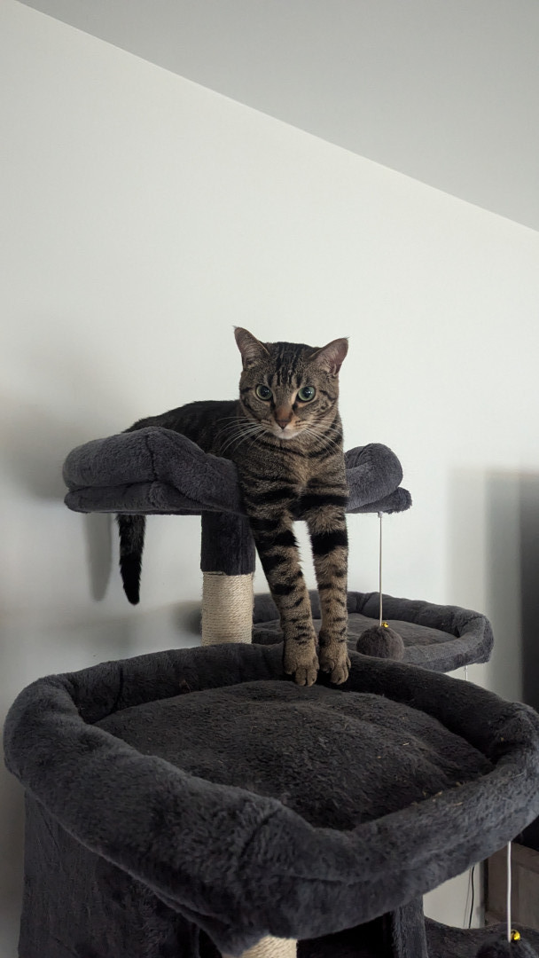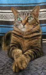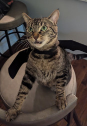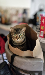 Capone is a loving, but feisty 4yr old DSH tabby girl. She loves Churu, and her personal space, unless it's cuddles with her daddy.