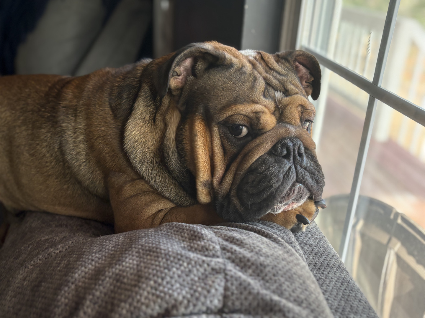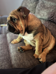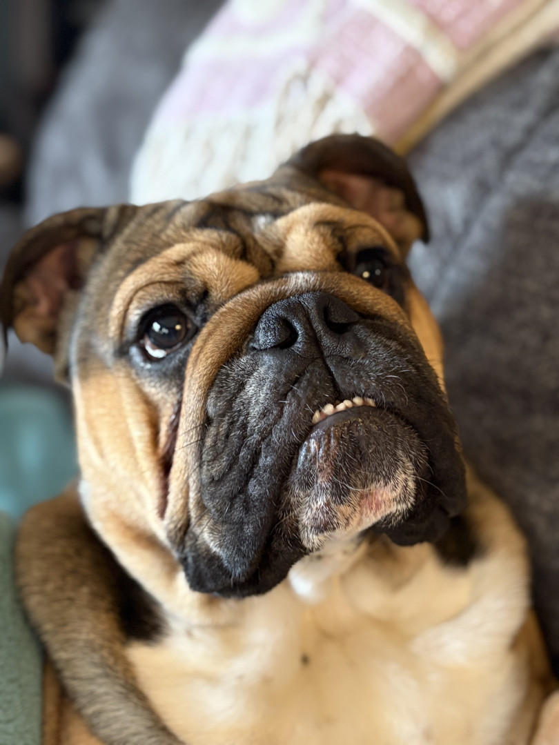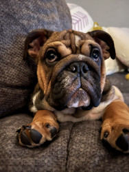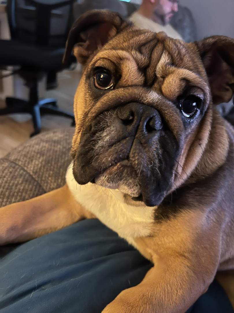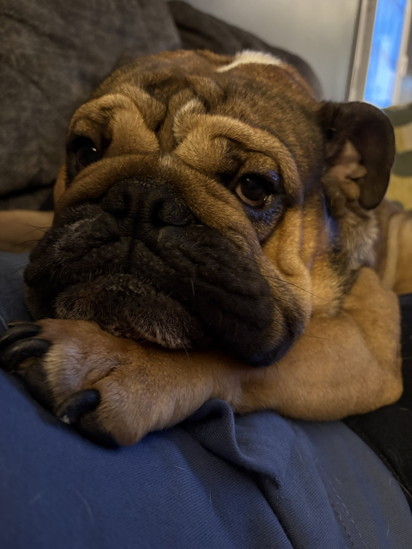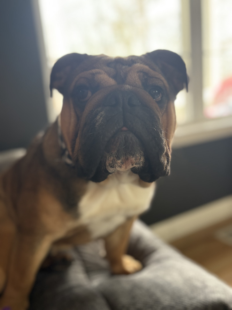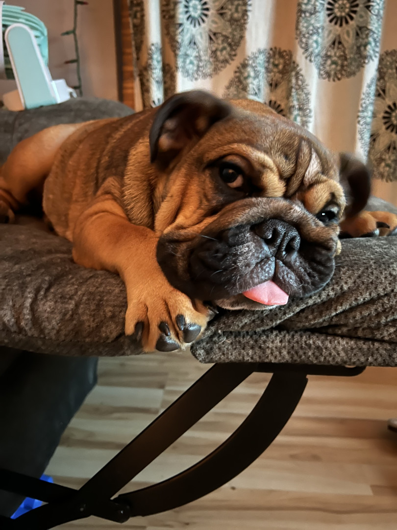 He is a one of a kind bully. He loves his family and is such a spunky boy. He leaps around our living room from couch to couch to chair when he has the zoomies and it is hilarious to watch. He thinks he is a guard dog but really is just the biggest sweetie. Anywhere his mom is he has to be right up on her, like her shadow.