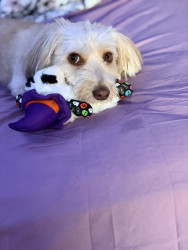 Carmela is a sweetheart but has her spicy moments! she loves to dress up and play fetch, she’s very food motivated and love to do tricks