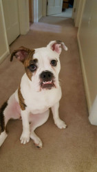A smart, friendliest old English bulldog