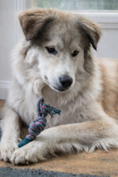 Her favorite toy is her rope, always in her paws, always ready to play.