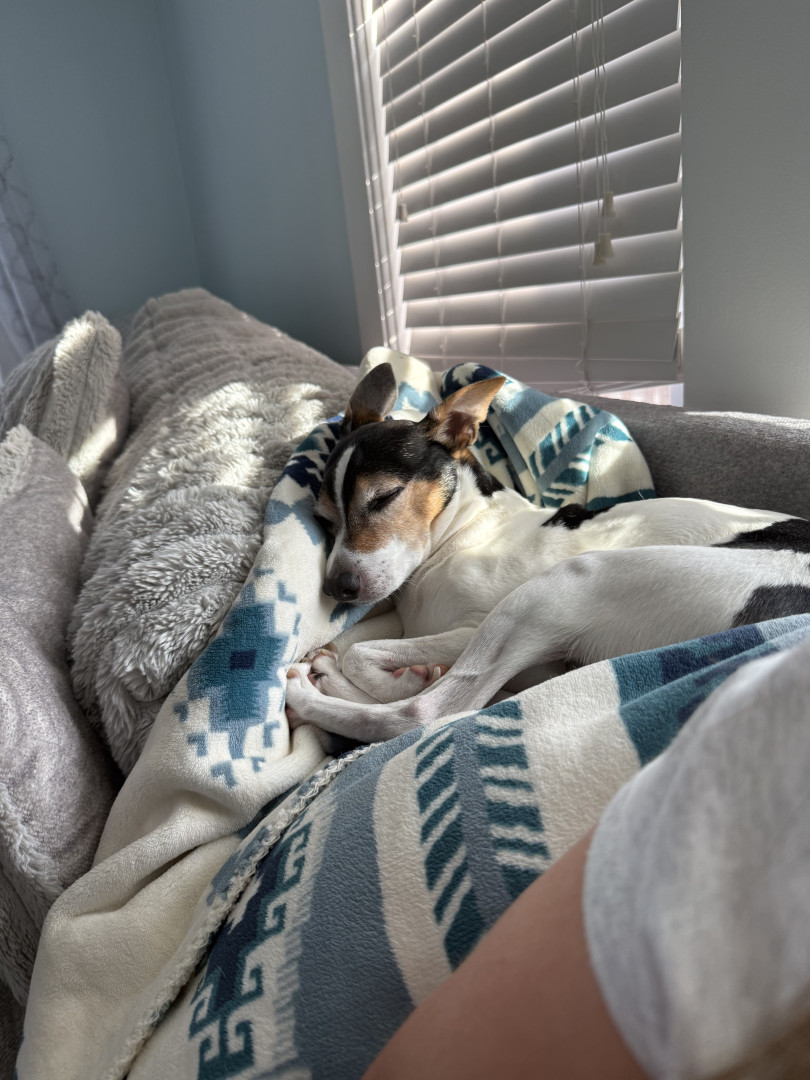 Cash is our little grumpy old man, he’s an 11 year old rat terrier mix! But has the spunk of a puppy. We couldn’t imagine life without him!