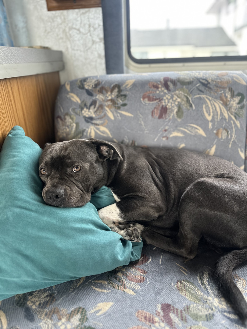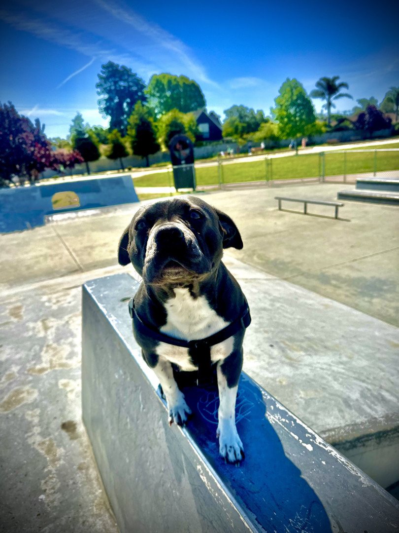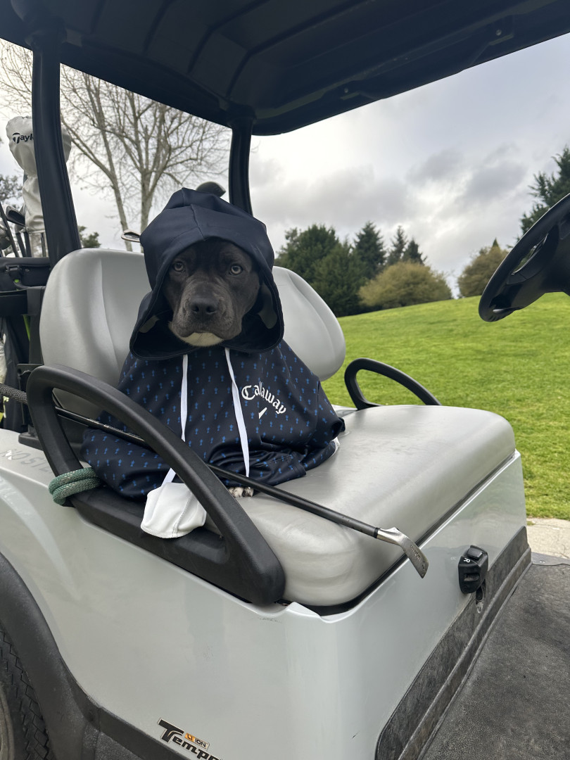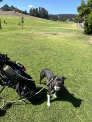 Cashis is the a pitbull pug mix, she’s small with a big personality. She loves cuddles and golfing she’s the most loving dog there is.