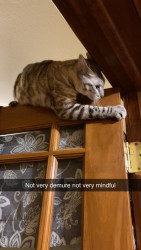Crazy, chaotic, yet sweet and affectionate and the best cat sibling to the kittens