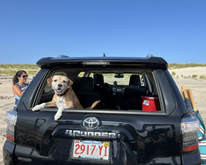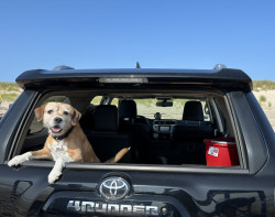 Cassie an 11 year old rescue, half beagle and half just about every terrier breed. Loves the beach, bully sticks, chicken and her Greenies