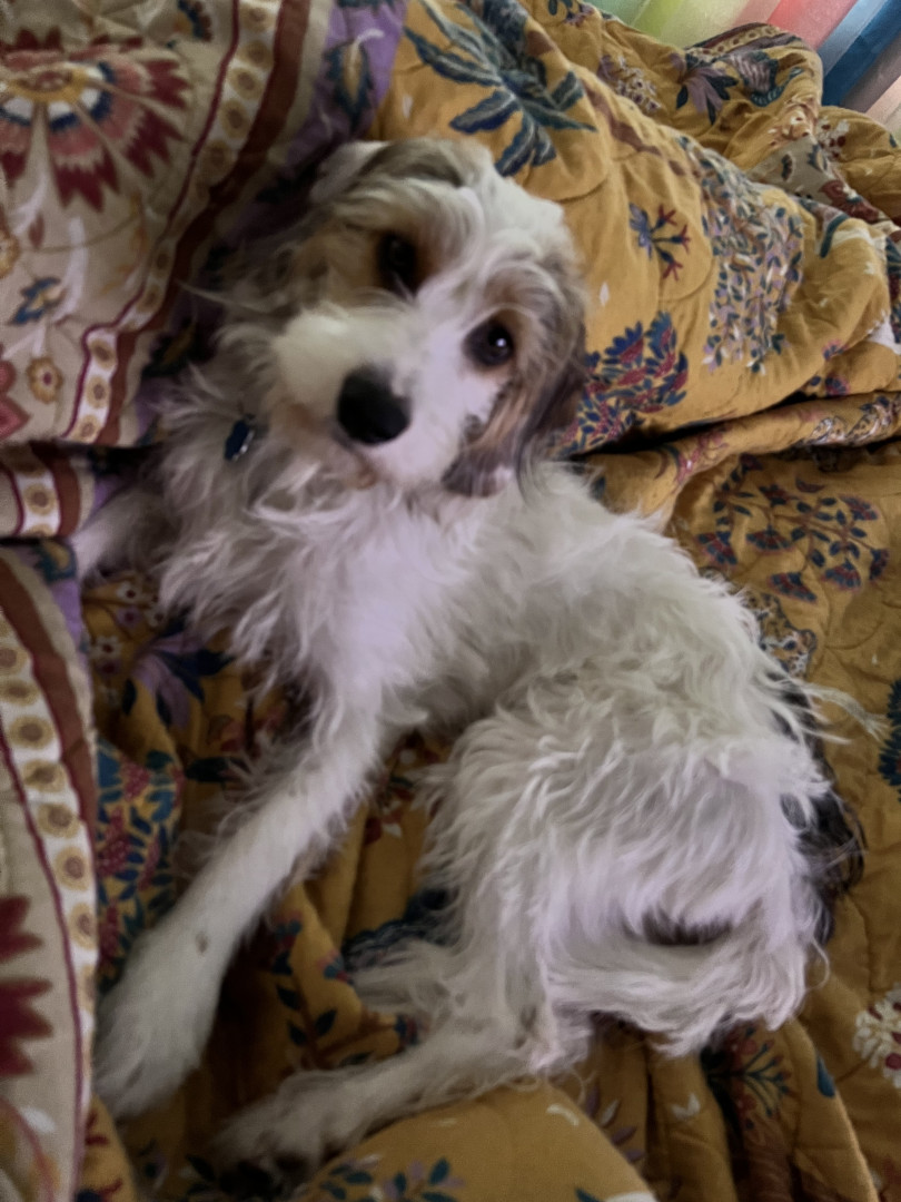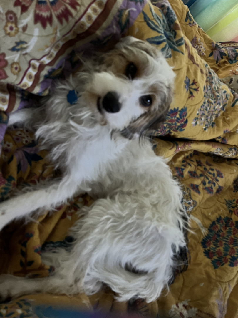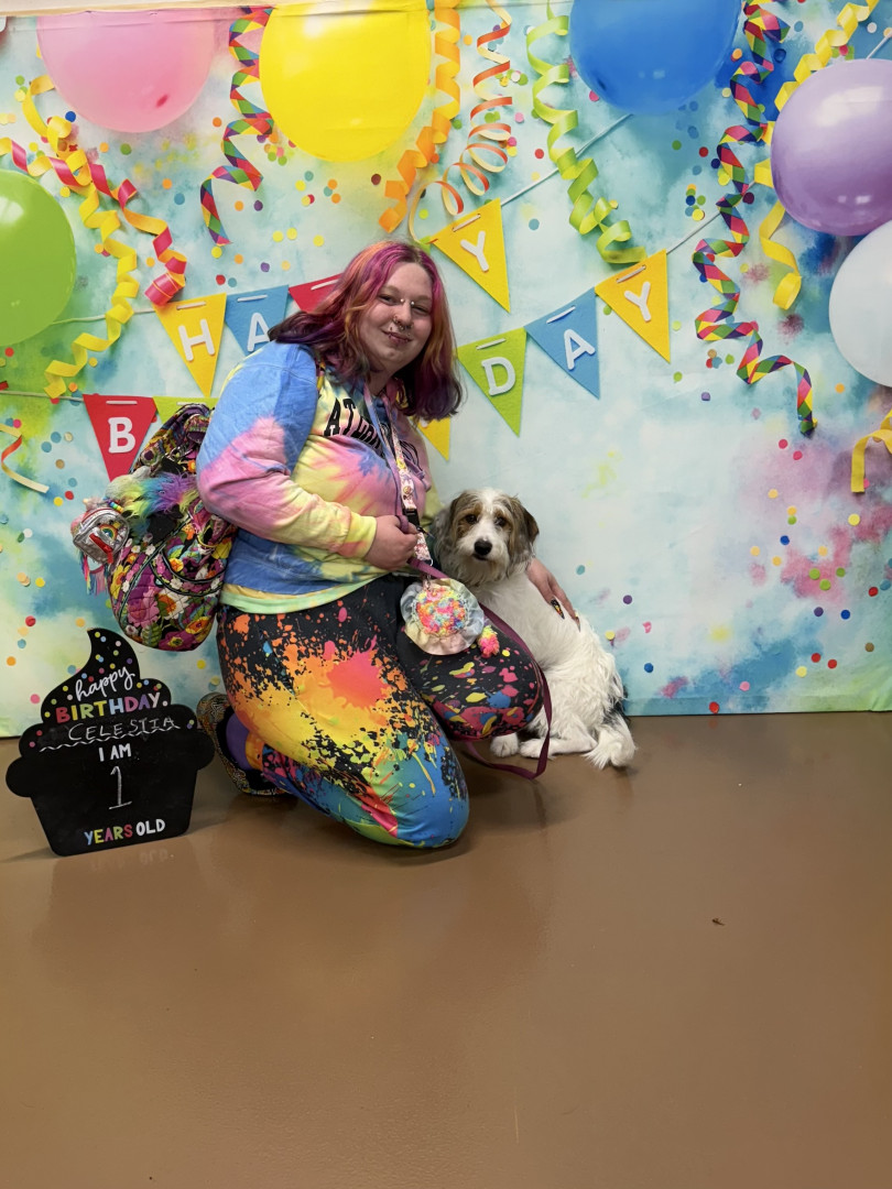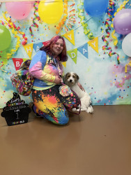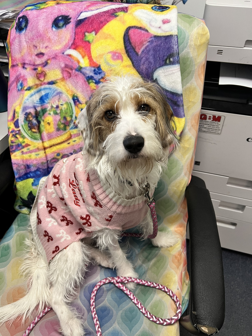 She’s a joyful dancer she doesn’t just wag her tail she dances her way into hearts. Leaping with excitement and spreading pure joy. She’s a stress busting superstar! As the office therapy dog she transforms tension into laughter, reminding everyone to play, relax, and smile. She is a cuddle queen! At the end of the day she offers warmth comfort and security. Proving that love is her superpower!