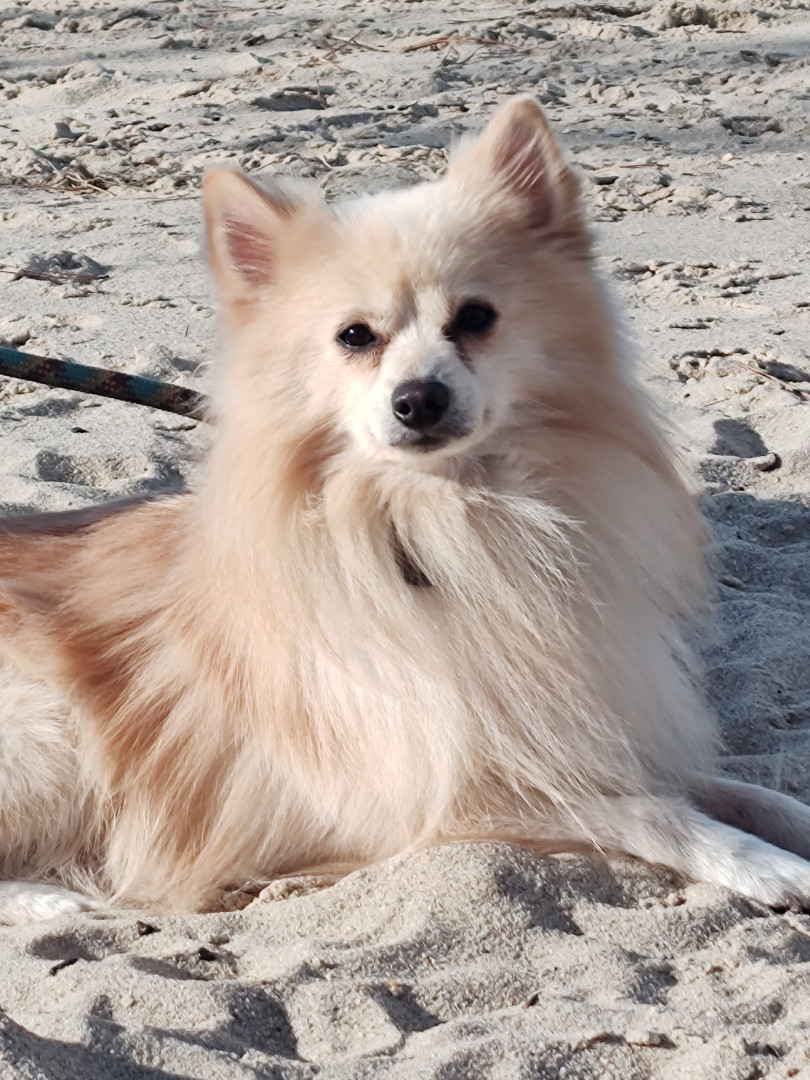 Wolf pomeranian. Age 2 1/2 years old. Loves to play, snuggle, beach life, digging for shark teeth. Loves to walk on two hind legs