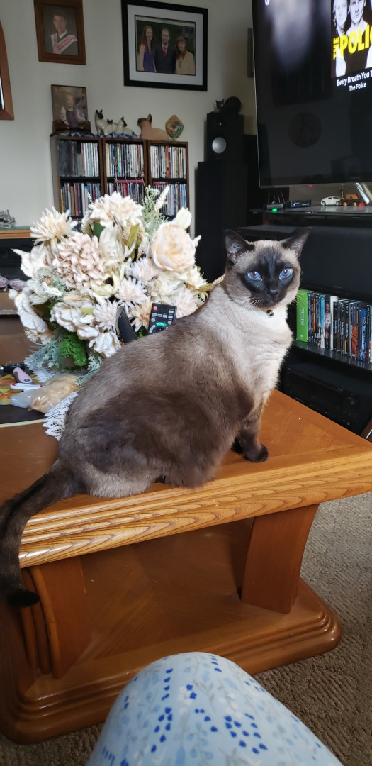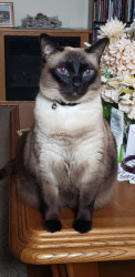 Chai is a 5 year old Chocolate Point Siamese kitty. She is very affectionate and she doesn't play any more she is very content to lay around