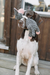Chai's go-to indoor toy is anything plush, she loves having a toy in her mouth at all times and gets very excited to show it off! When she's outside, the ball is always in her court (literally). Chai will play fetch for days and especially loves to show off her kangaroo legs to catch it! Tricked her and threw the ball the other way? Don't worry, she's got a nose that could find a pea for a princess! Her favourite part of the game is delivering the ball right into your hand for the next throw.