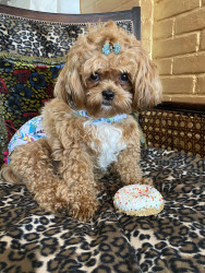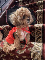 Chalo is a 7 year old female shipoo. She loves dressing up, collecting stuffed animals, playing outside and spending time with her cat pals.