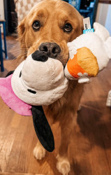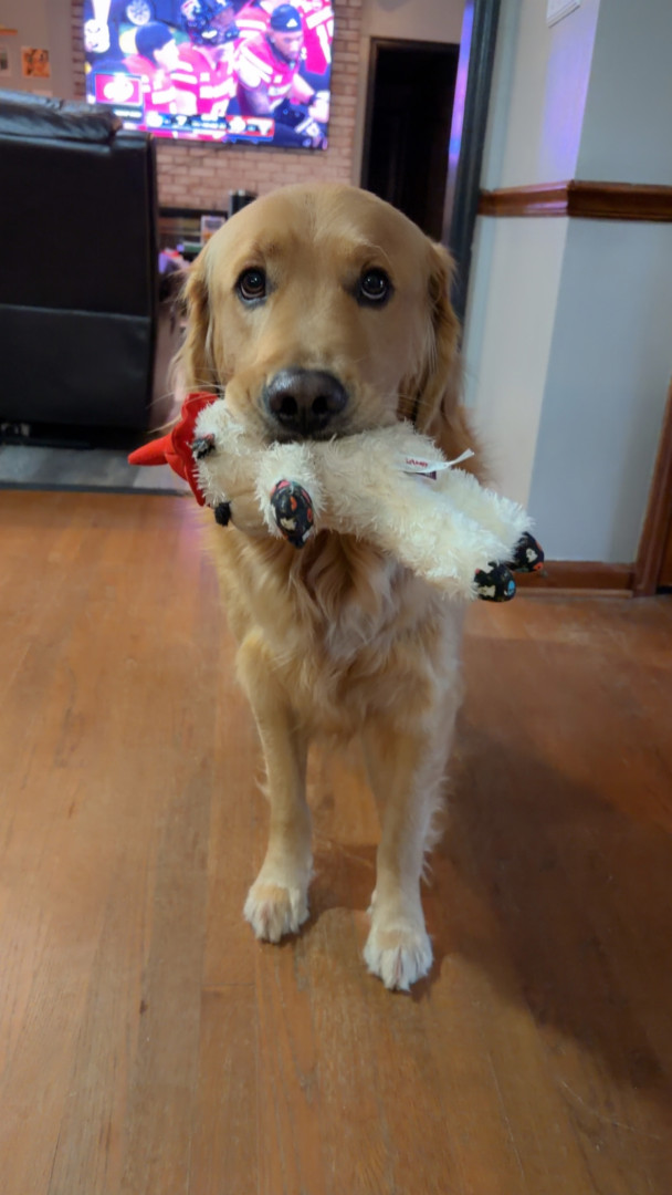 Champ never meets a toy he won’t love or a human he won’t charm.