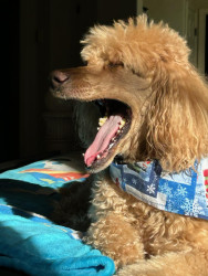 After enjoying male dogs all our life and after our White Standard Poodle died, our son found this Rescue female Apricot Standard, Charley.