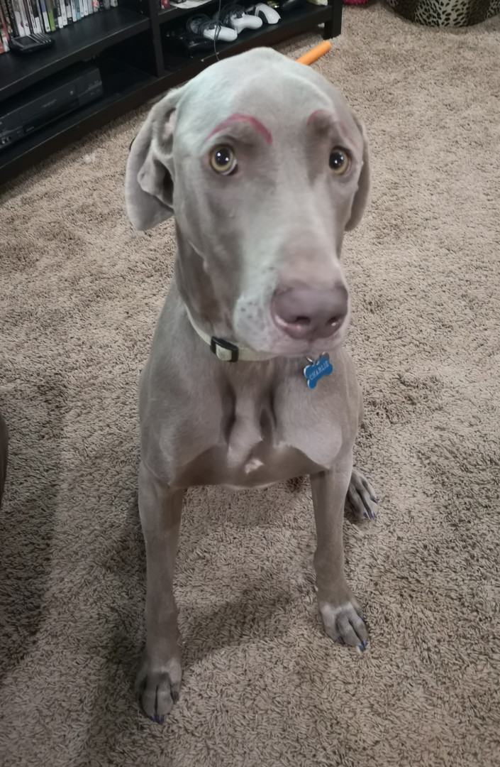 Charlie is a sweet loving Weimaraner, full of energy and adventure. His nose often gets him into trouble but who can get mad at that face.