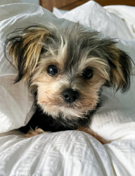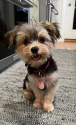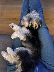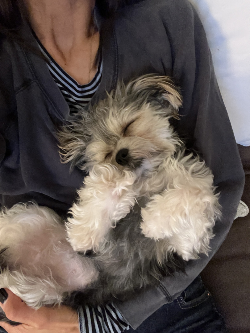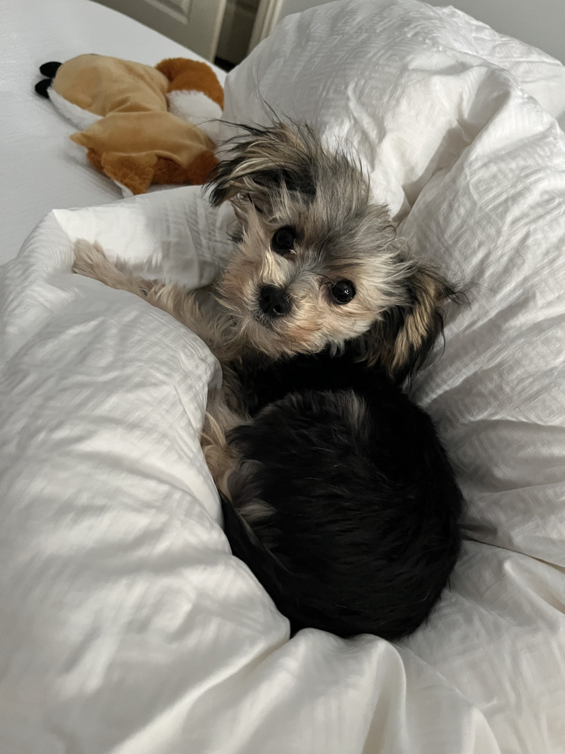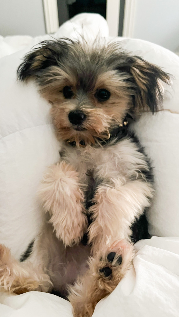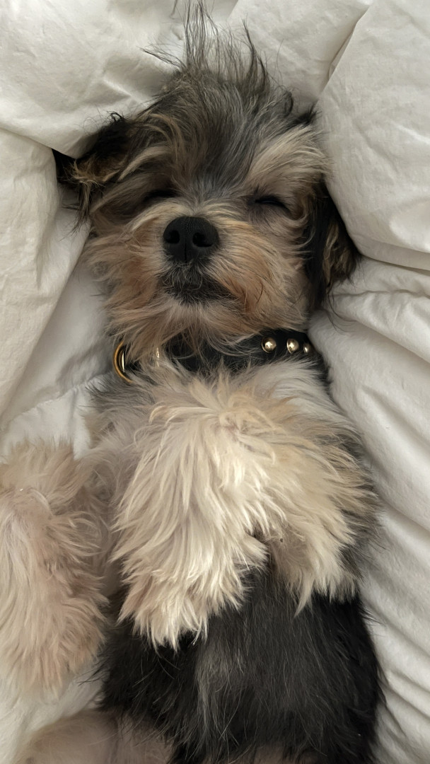 Charlie’s most unique quality is her intelligence and emotional awareness. At just 9 months old, she’s mastered place, sit, come, stay, heel, and even jumps into the tub for bath time. She potty-trained in just two days. She’s calm, observant, and thoughtful—not reactive or barky—always learning, always reading the room.