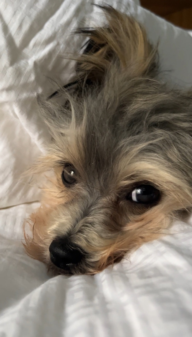 Resilient, smart, and deeply intuitive—Charlie survived a puppy mill and now thrives as a curious, gentle girl who reads the room & people.