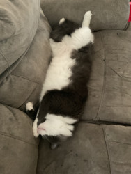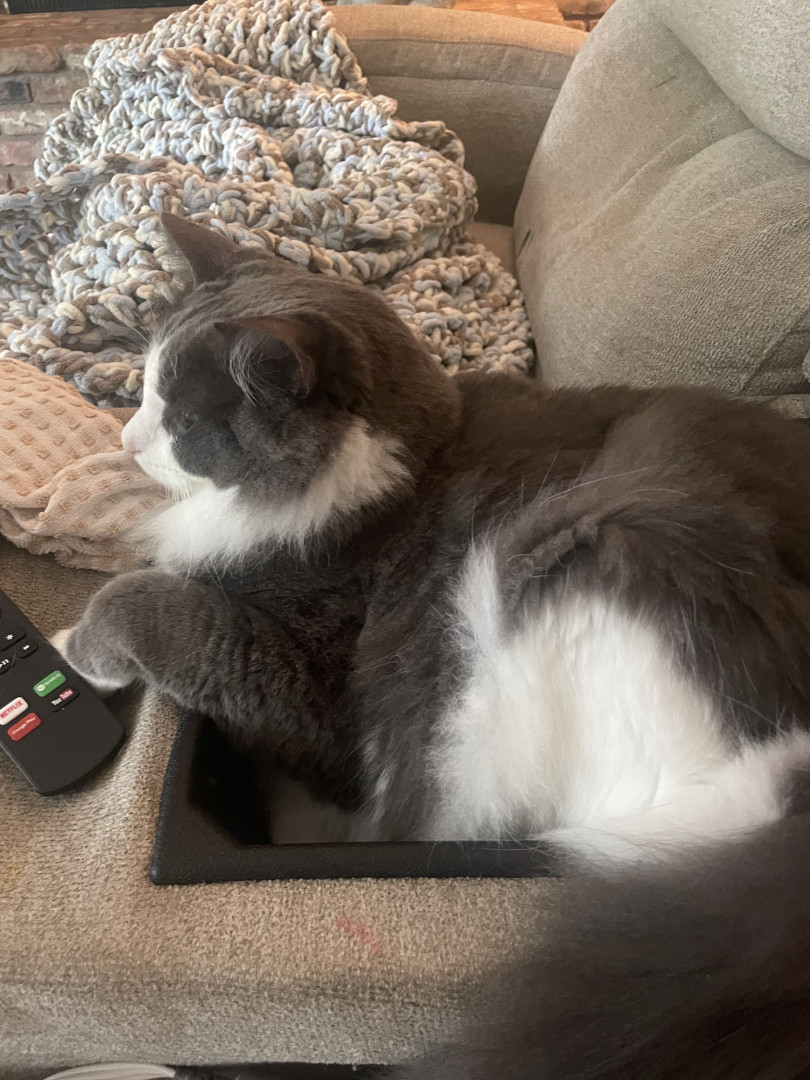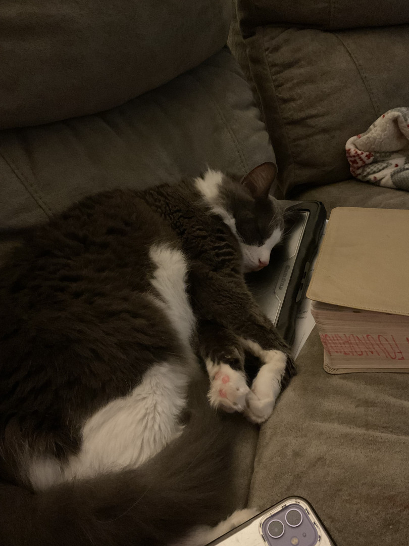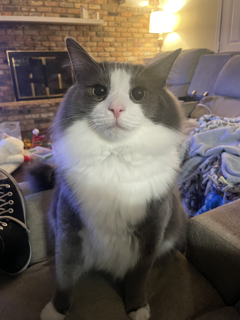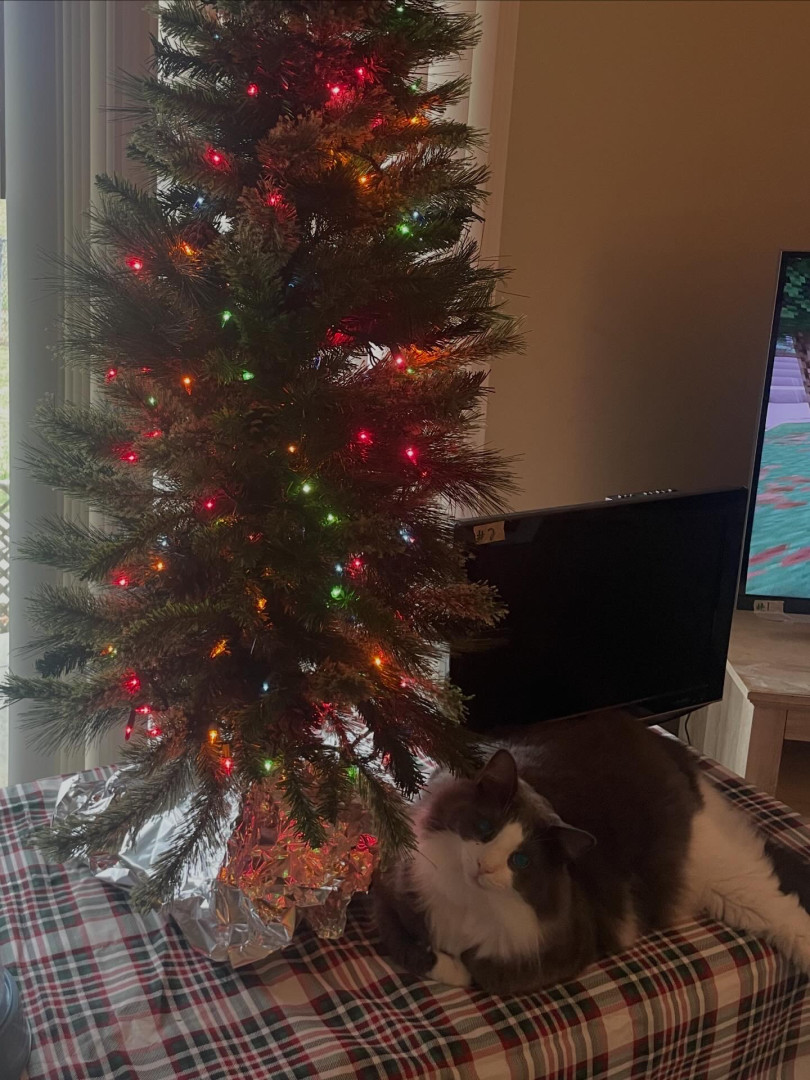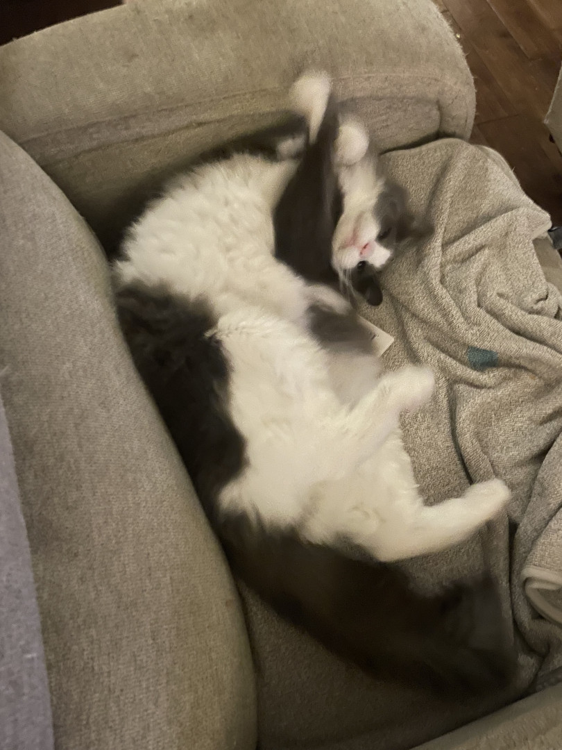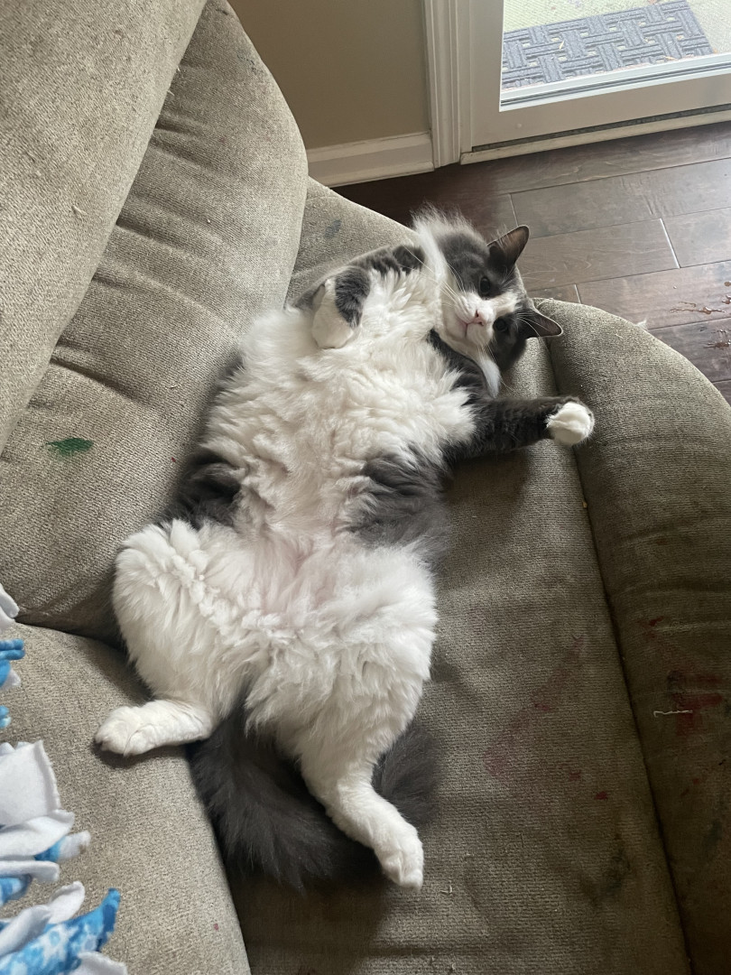 Charlie is everyone’s favorite cat. He has two sisters, but he’s the favorite. He’s very social and is very friendly. The day we brought him home from the shelter, his eyes were pointed out immediately. They can look very human like and it almost freaks you out. When we adopted him, we picked him because he was sleeping and looked like a cat who would sleep all the time. On one hand that’s exactly how he is. He sleeps in the most uncomfortable looking positions and does so most of the day.