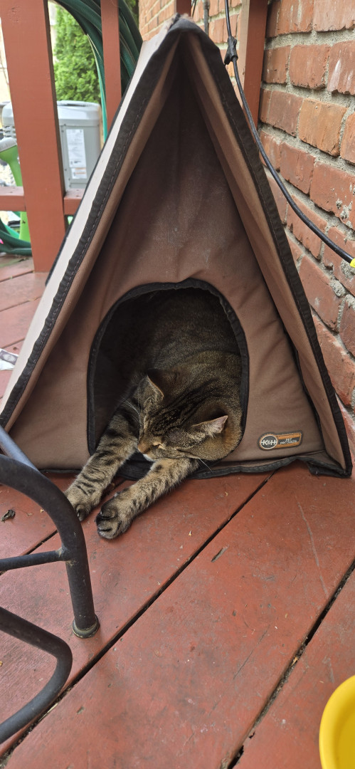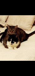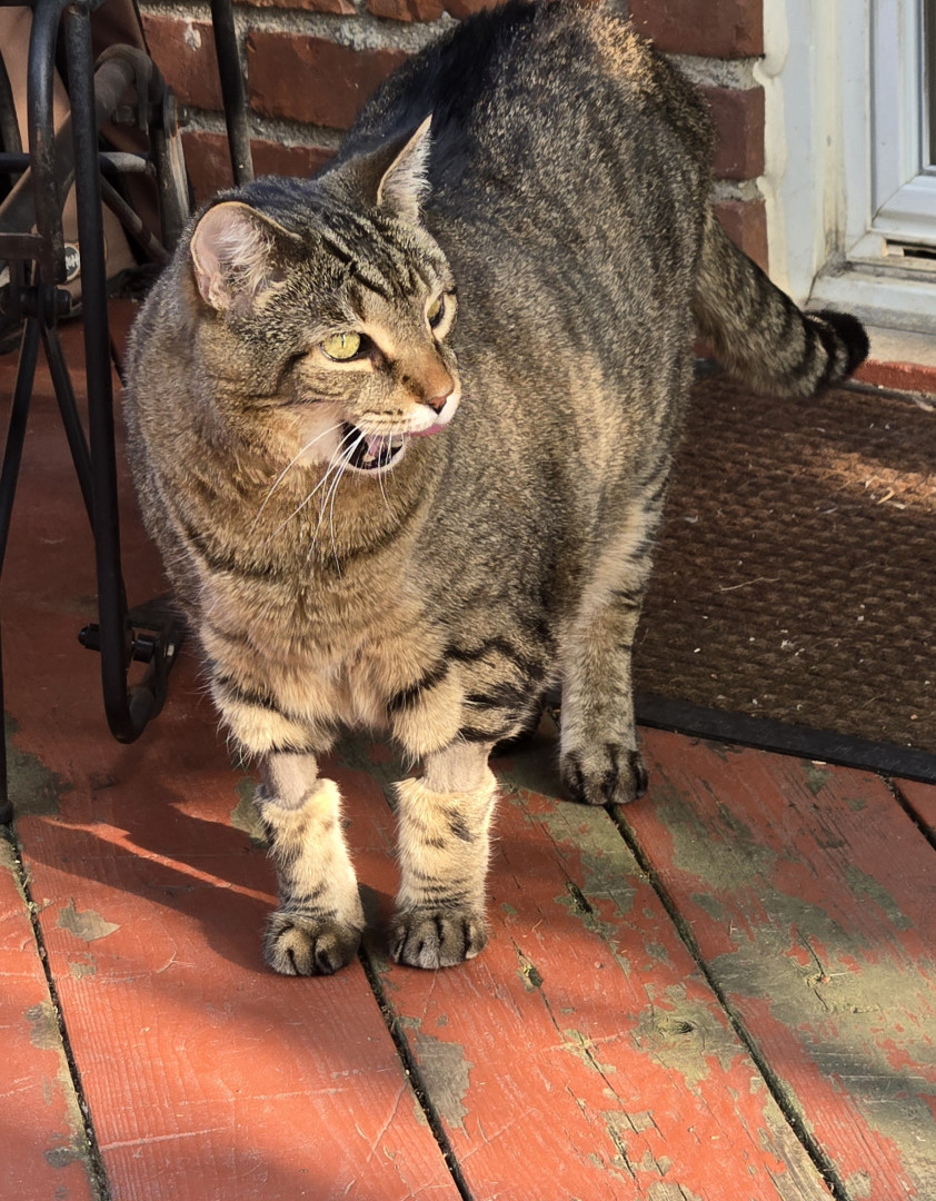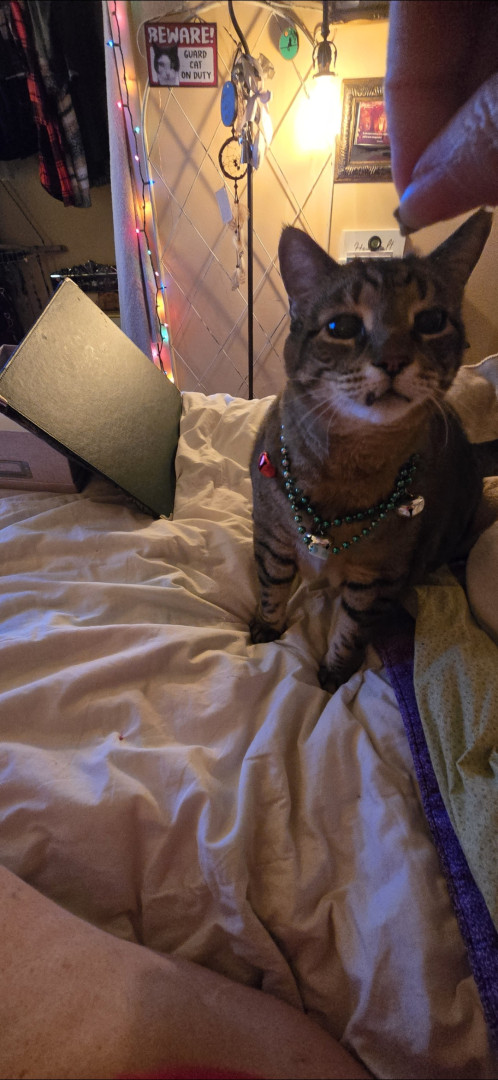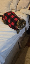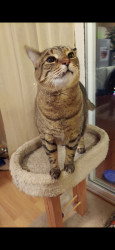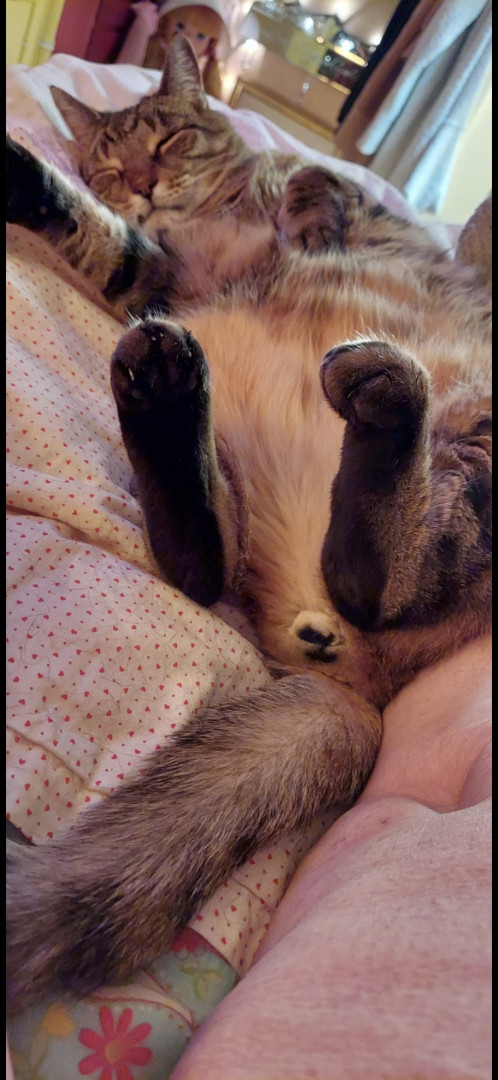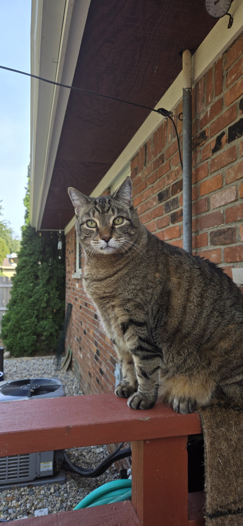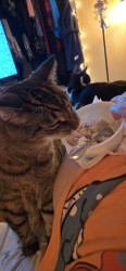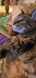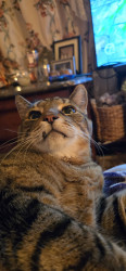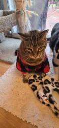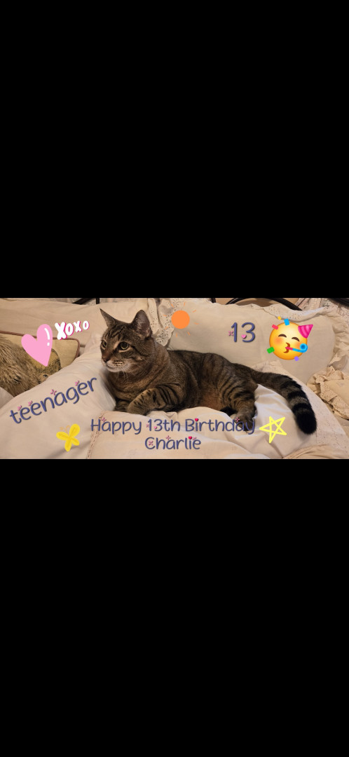 Following his Mommy everywhere. And obeying. And when i scratch under his neck he lifts up his left hind leg and makes a scratching motion up in the air. Too cute and funny! Charlie is 13 years old. He's a teenager 😉 He also will wait for his water fountain to come back while it is being cleaned