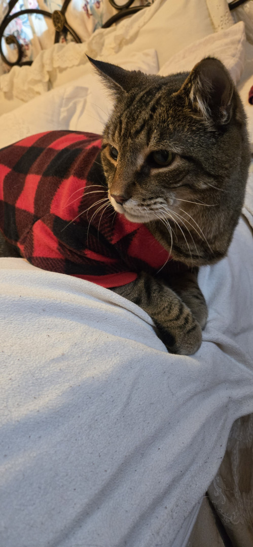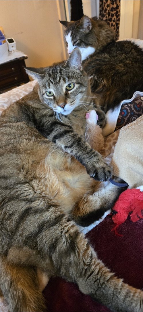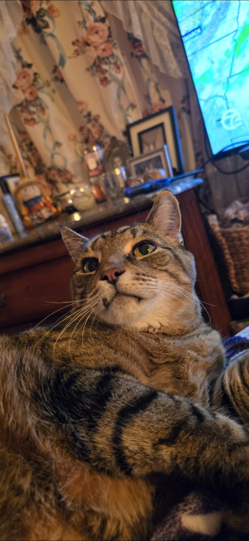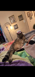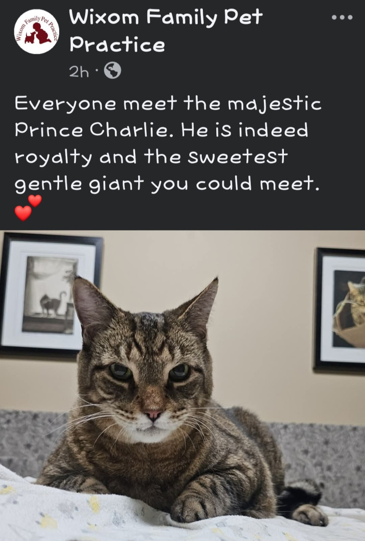 Because he is MAJESTIC and Royalty/he is My Prince Charlie ♥️. He is super friendly and loving. A gentle giant. I have a gf who comes over to see him. And another gf who adores him! Everybody loves Charlie ♥️ Charlie was extremely skinny when I got him. Pretty sure his previous residence barely fed him. He was in a bad foster care. My friend stopped using that person. There were many red flags. So because of that Charlie let's me know when he's hungry by licking me sometimes will litely nibble
