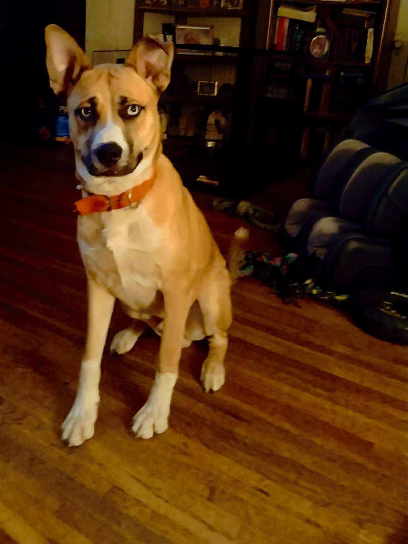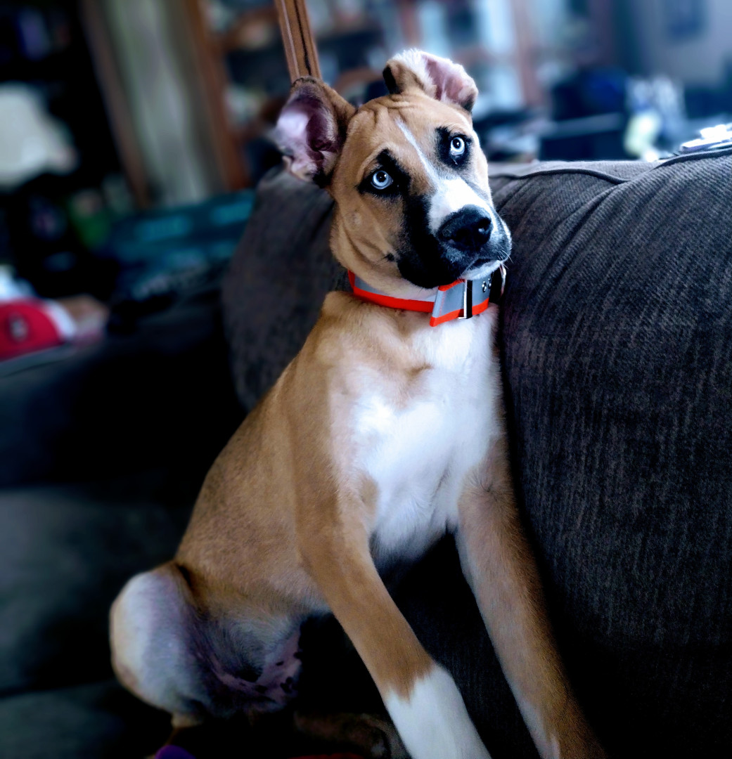 He's a calm loving boy who loves his kid and car rides. Loves to play tug of war and ball.