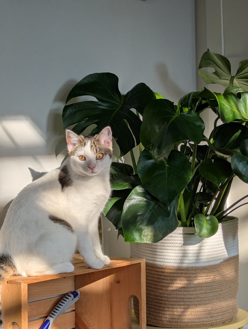Crazy kooky Charles. Loves to cuddle, eat all the plants, and have Zumiez around the house.