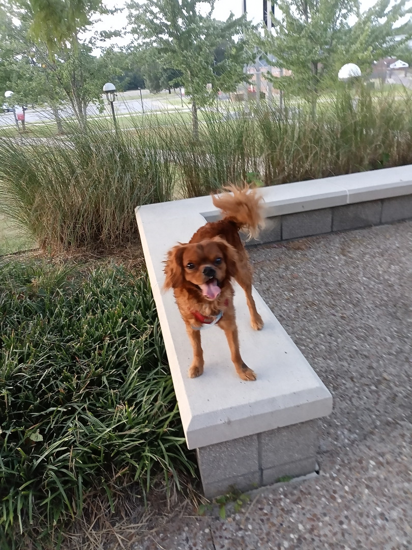 Charlie is unique and he will ride the scooters he will not go in the road and he loves to run at the college where he will jump the creek