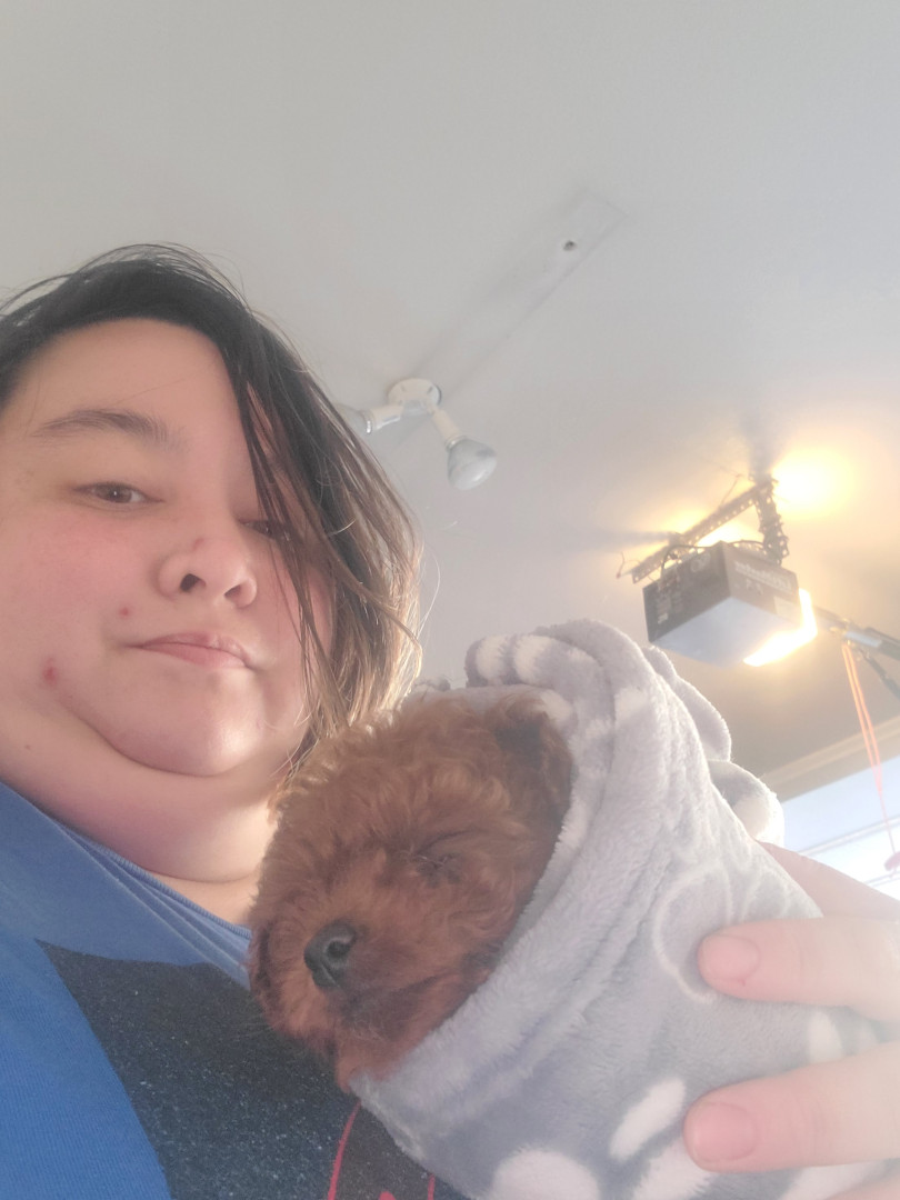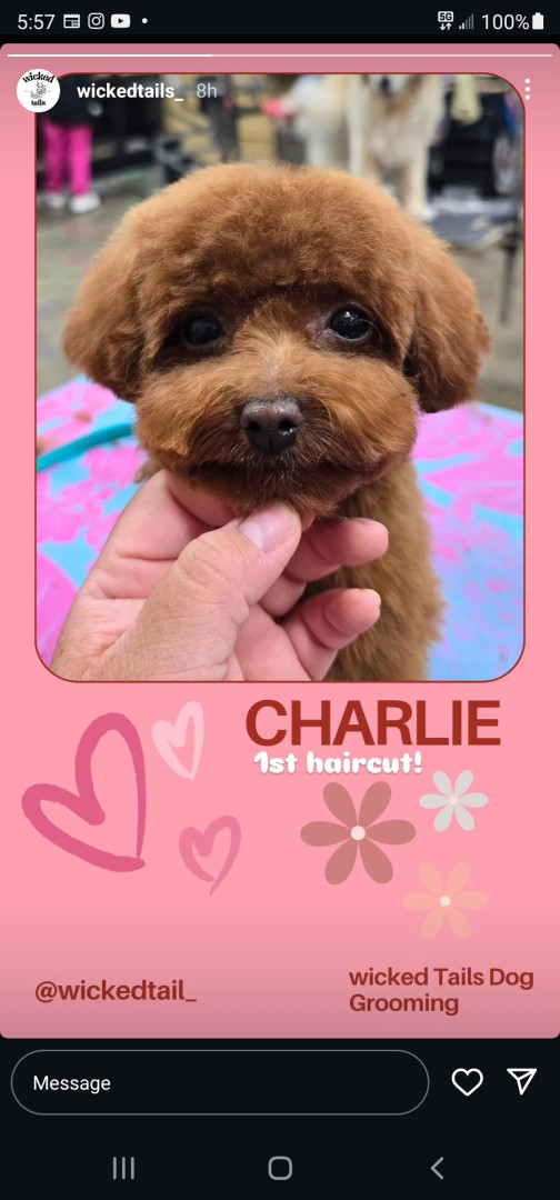 Charlie is a really sweet outgoing puppy she loves the snuggle and cuddle and she's always there when I have really bad anexity.