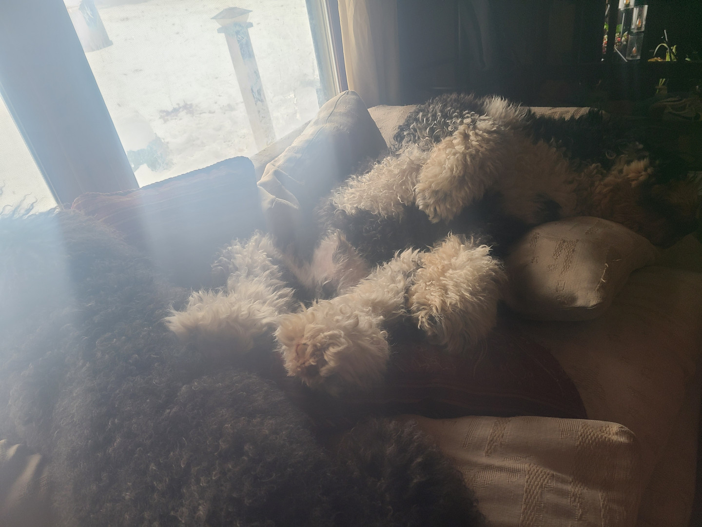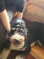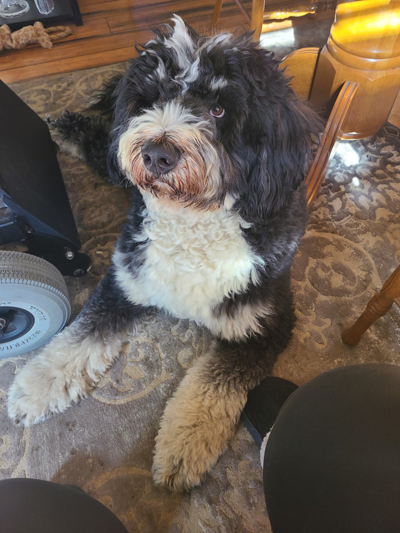 He is a dog, dog. Chews sticks, chases squirrels, plays ball, loves all his toys and stuffies. He is a Bernadoodle and weighs about 130 lbs.