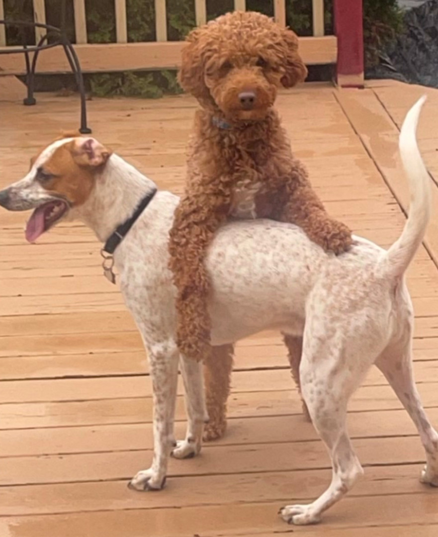 Both my dogs Max and Chase Max is lovable requires lots of attention and loves to play with his brother Chase they both try love each other.
