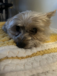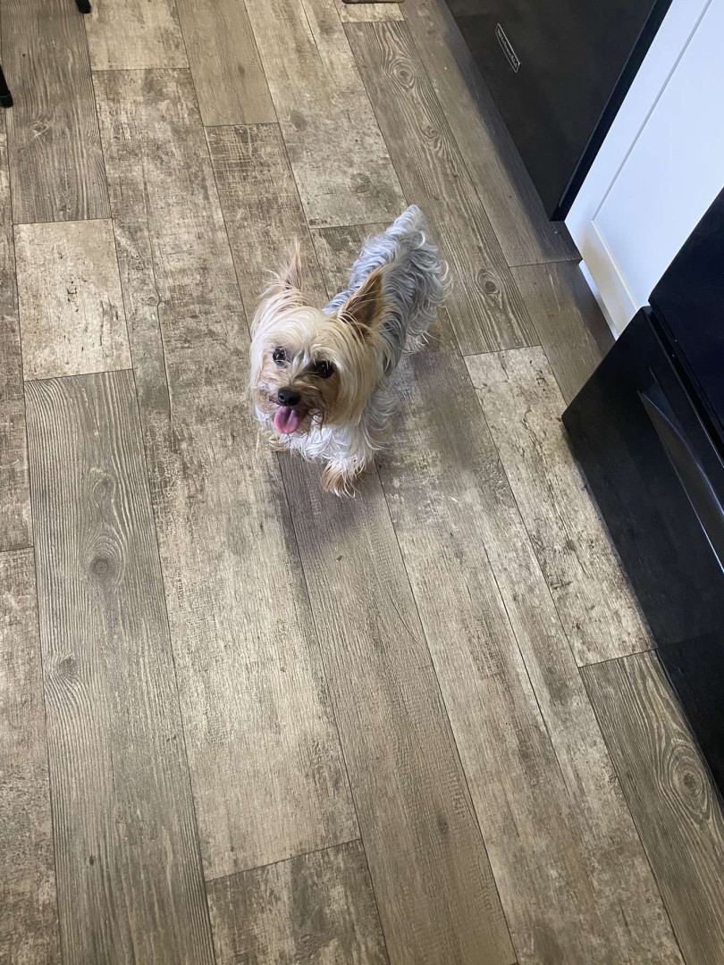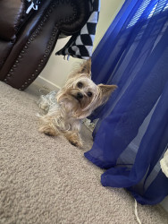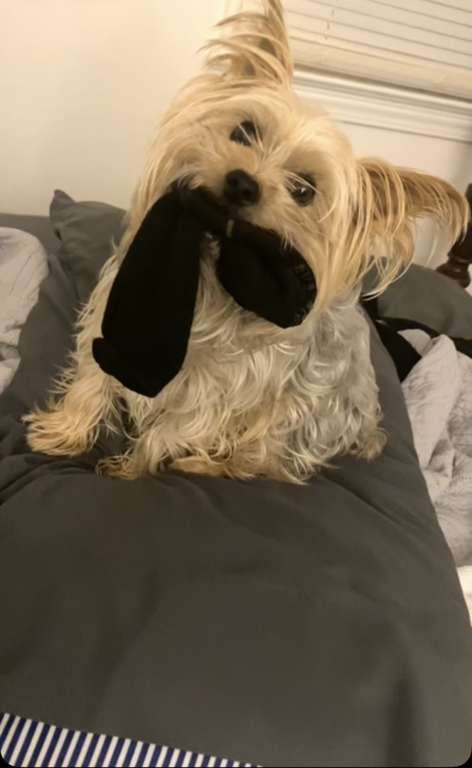 Chase is my four year old Yorkie that is full of energy. He loves to bark. He also loves sitting outside. But he hates the word bath.