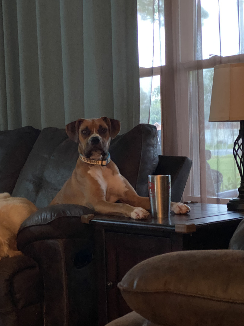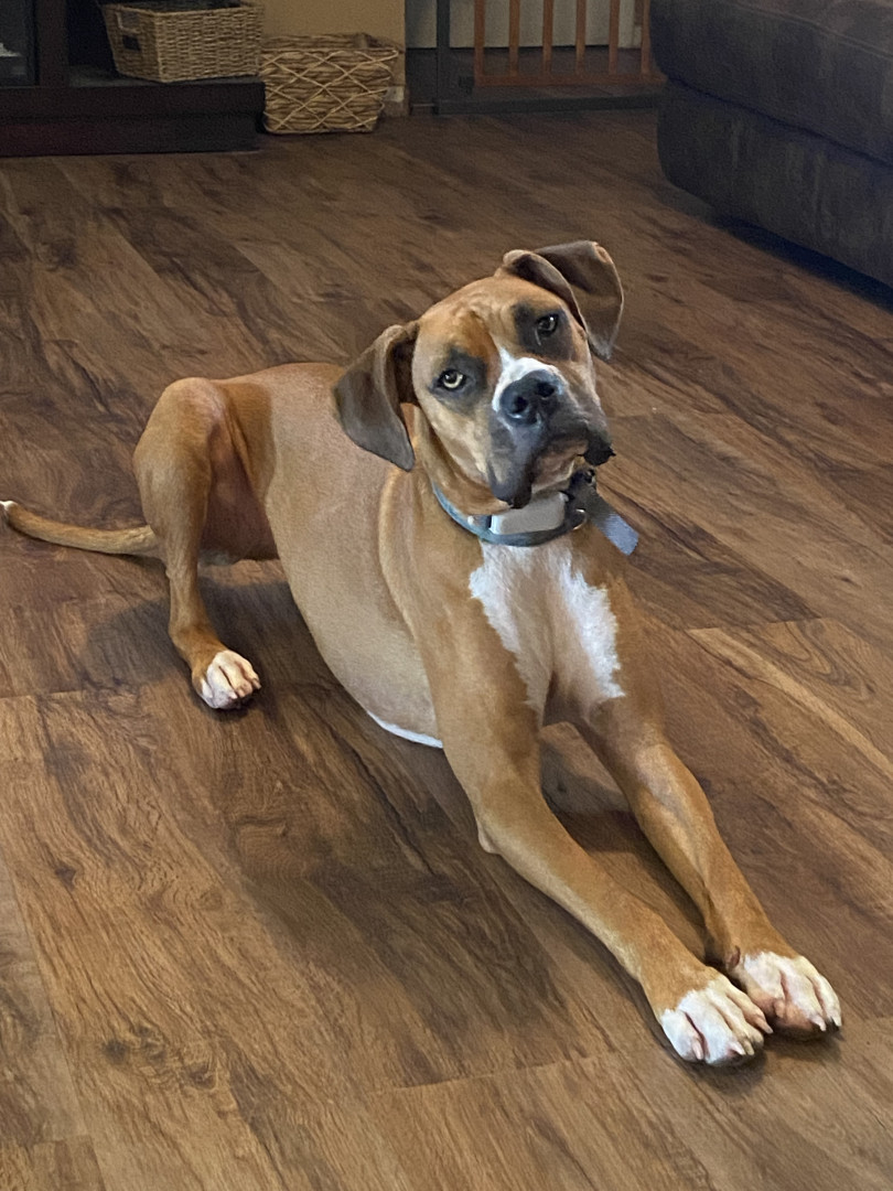 He has a heart as big as his paws. He is the perfect combination of loveable and goofiness , and protection to make the perfect dog for our