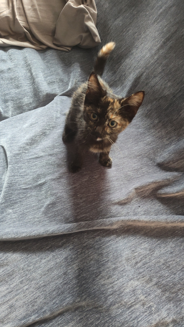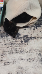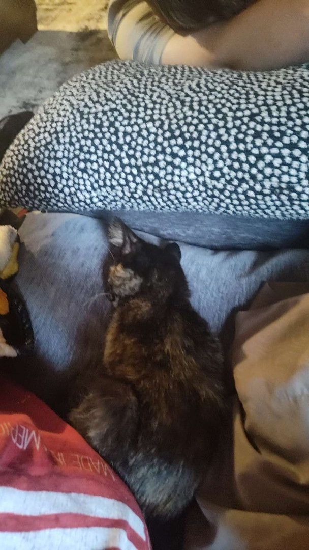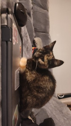 She's a very sweet little kitty,she loves her wet food, and her little springy toys, although she is very timid but still cuddly 🫶