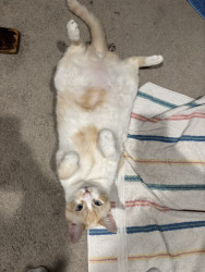 Cheesy is a super affectionate cat and always wants pets. He likes it when you throw his food up in the air and he will catch it.