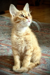 Our beautiful, playful kitten Cheeto picked us. He showed up on my doorstep and decided to adopt us.