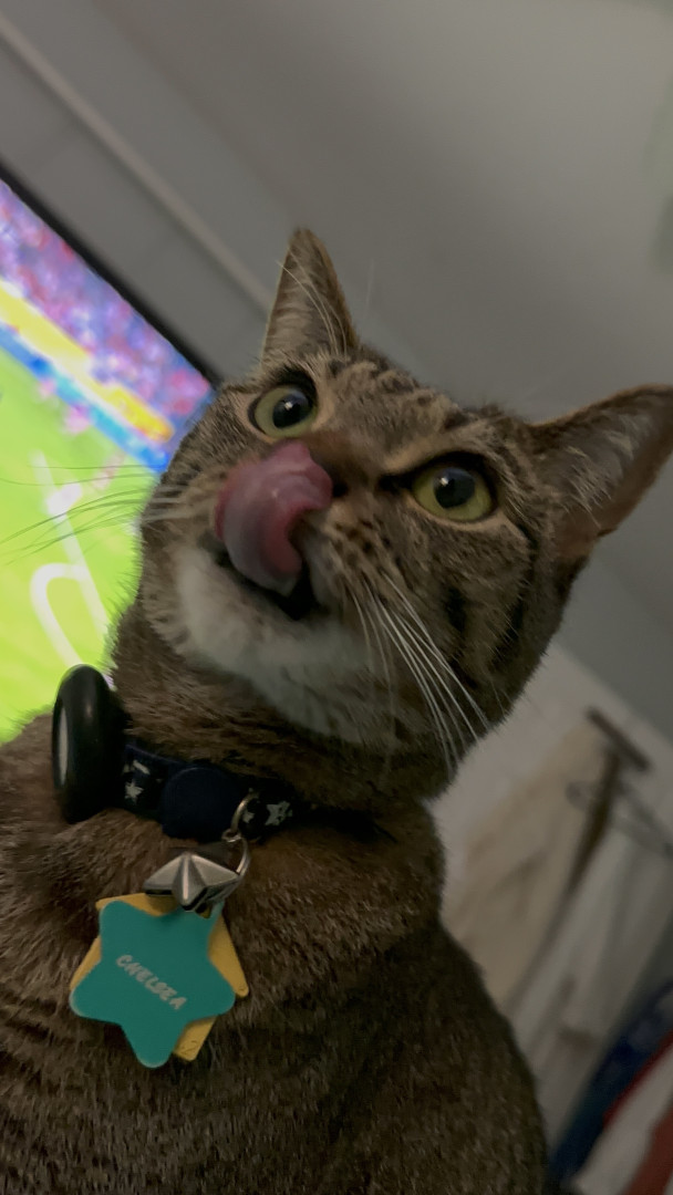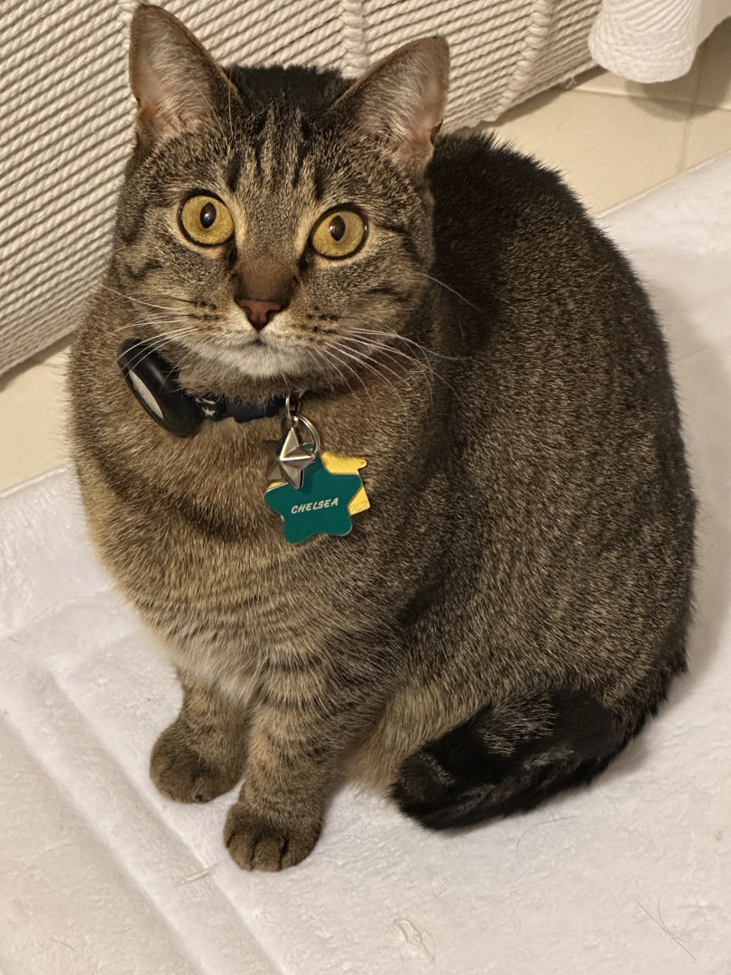 Because Chelsea is the perfect mix of sass, chonk, and charm… She’s a fearless bird-watching parkour queen with a killer knead, a piercing stare that melts hearts, and an unmatched love for Squeeze Up treats. One look, one knead, and one treat later—you’re hers forever.