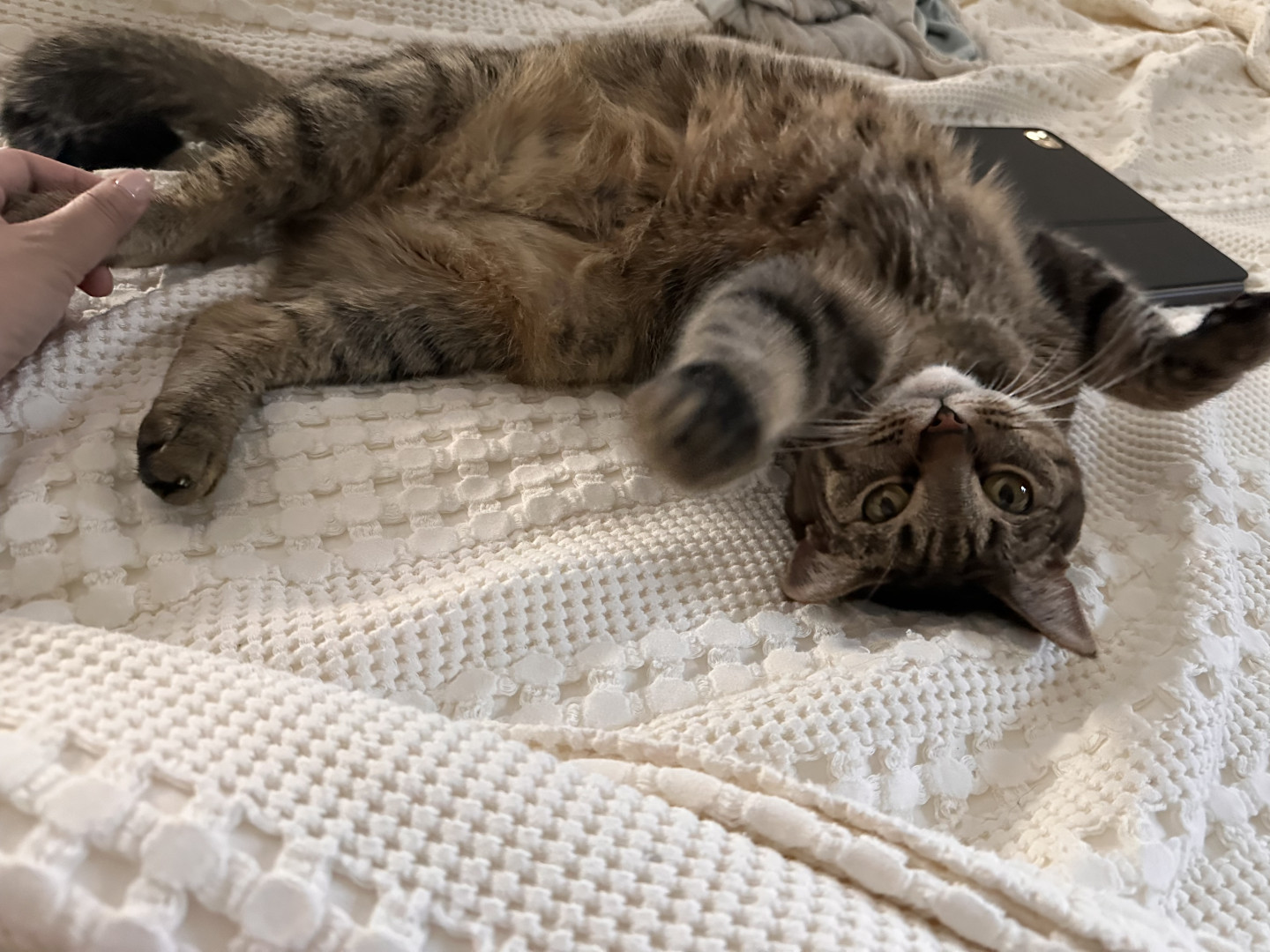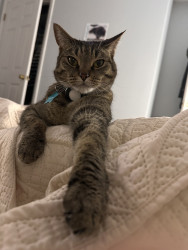 As chubby with a big belly bag as she is, she can parkour on a tree while chasing a bird or squirrel. She has the most piercing look but instead of being intimidated, you fall in love with. She also gives you the best massage and flirtatious roll ever for attention and treats no matter where or what you do!