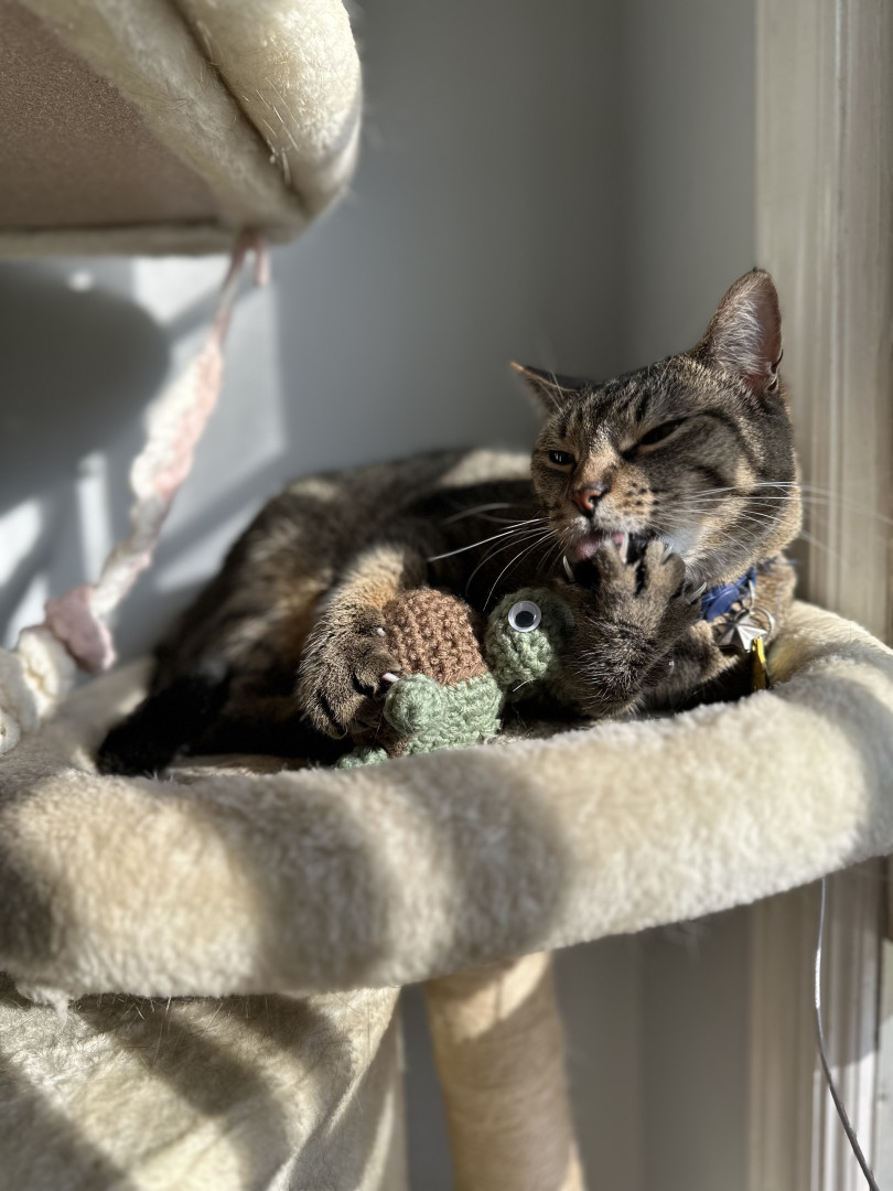Learn MoreShe’s a crackhead— loves catnip like there’s no tomorrow but most of all, Squeeze Up treats. She will love you in a heartbeat if you have one in your hands!