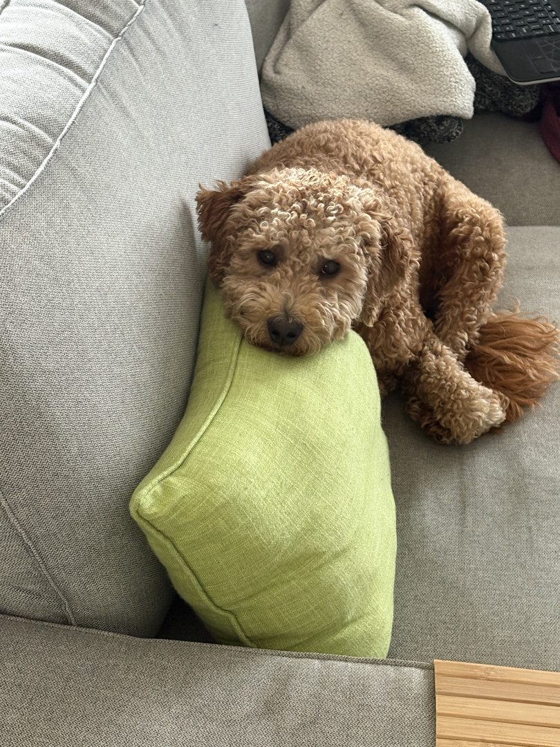 Chester is a mini golden doodle, he is the happiest, sweetest dog and is very popular among dogs and the humans at the dog park. we love him