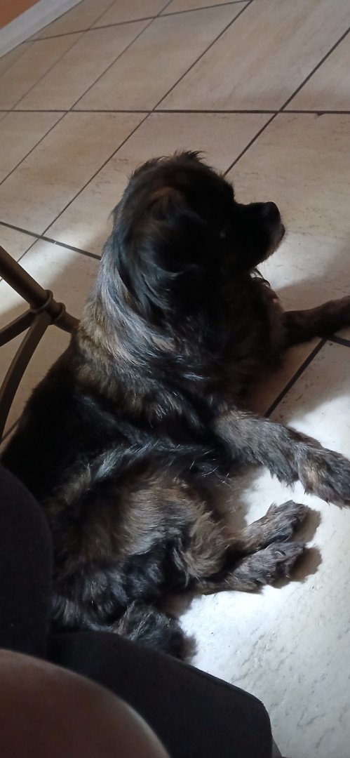 Chewy is a gentle, little dog. He looks at everyone soulfully and only barks if he wants his food. He's a lovable little guy.