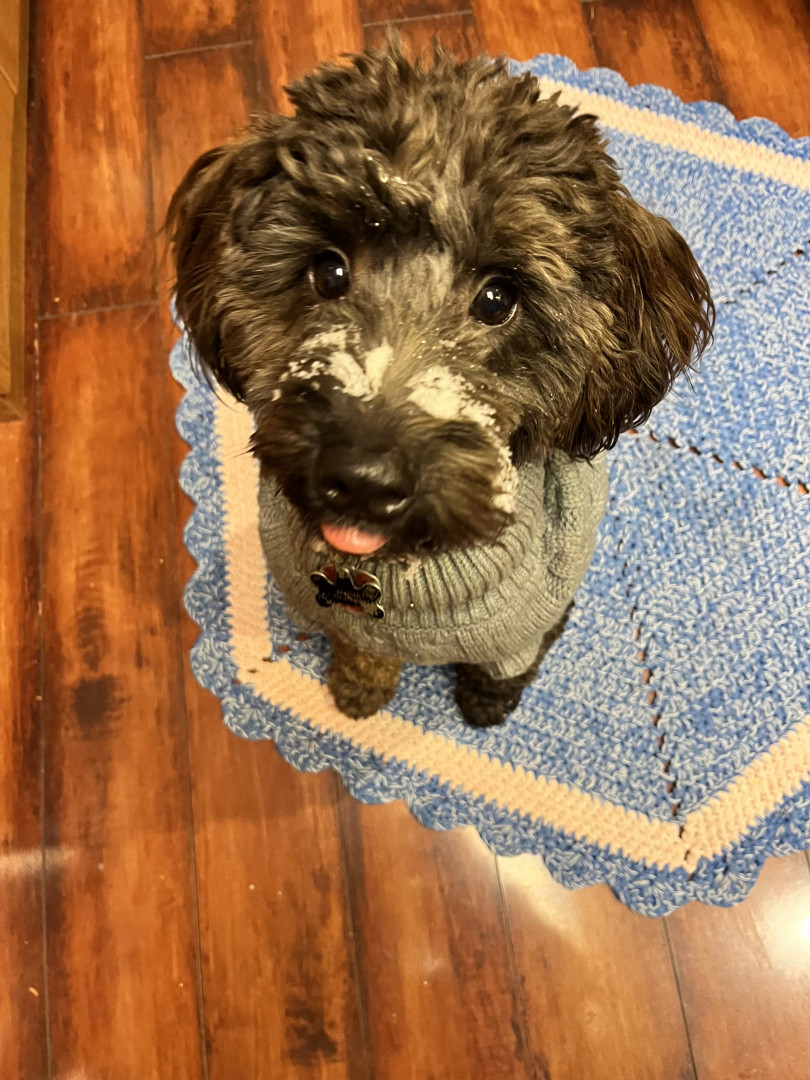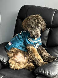 Chewy is a very happy sociable, loving dog. He is my salon greeter who is quick to roll over for belly rubs.
