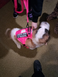 Because a lot of people love saint benards she’s shy against people until she knows them she loves to play she hops when she’s excited I think she would be a very good fit for America’s favorite dog