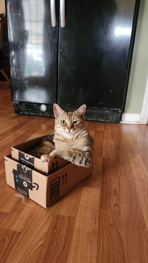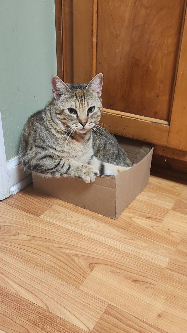 Chi-chi is a derpy cat that loves sleeping in boxes and being a big baby.