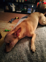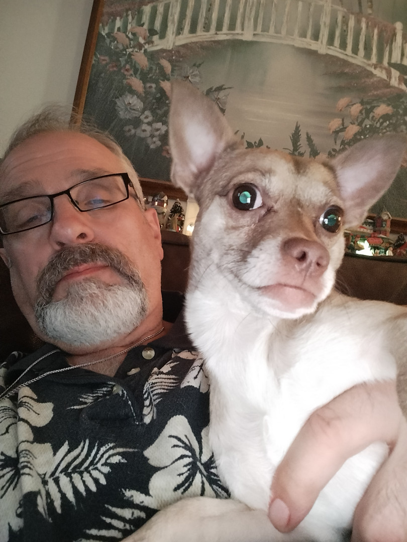 He loves people, runs waits and gives a run and bark he wants your attention. He's loveable and awaits his treat. Then love me.......